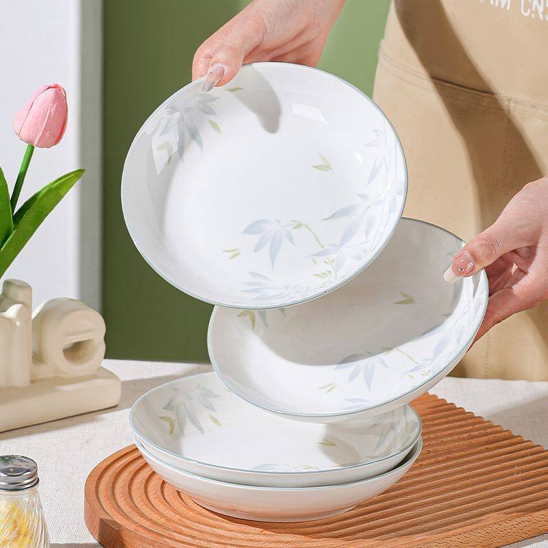 银竹家用盘子陶瓷菜盘炒菜盘子深盘创意欧式釉下彩水果盘凉菜盘