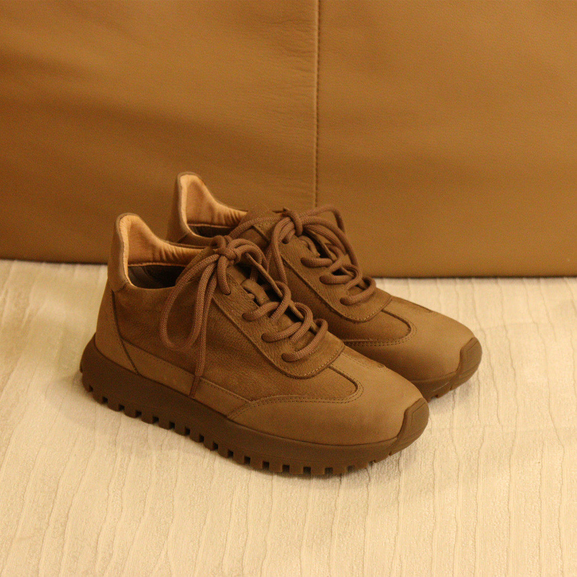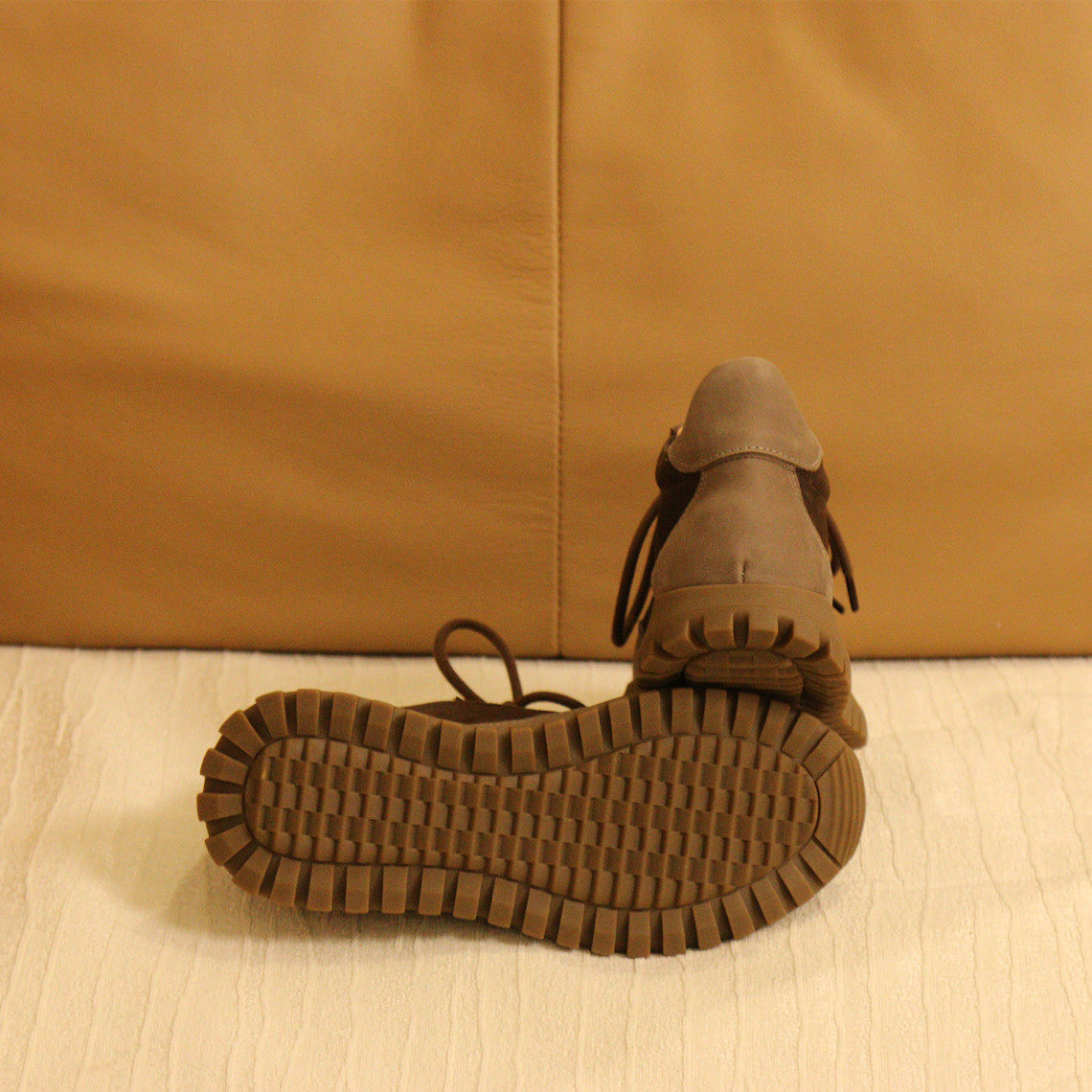 93225花藤萝蔓 牛皮圆头系带平底休闲软底真皮女短靴脚踝靴单靴