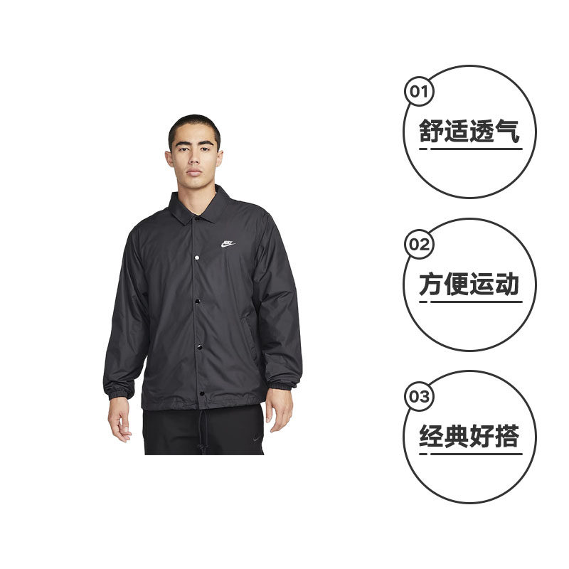 【自营】Nike耐克男教练夹克宽松复古叠搭刺绣休闲外套FN3317-010