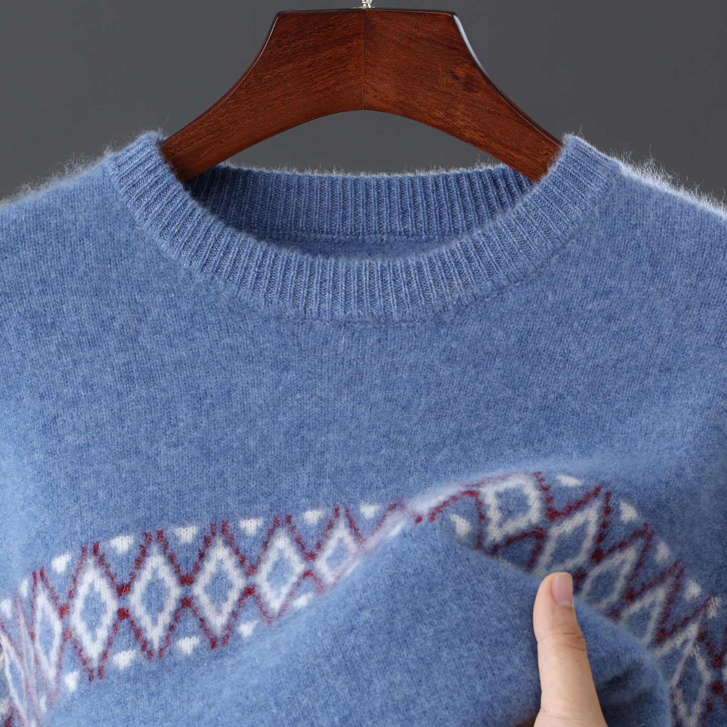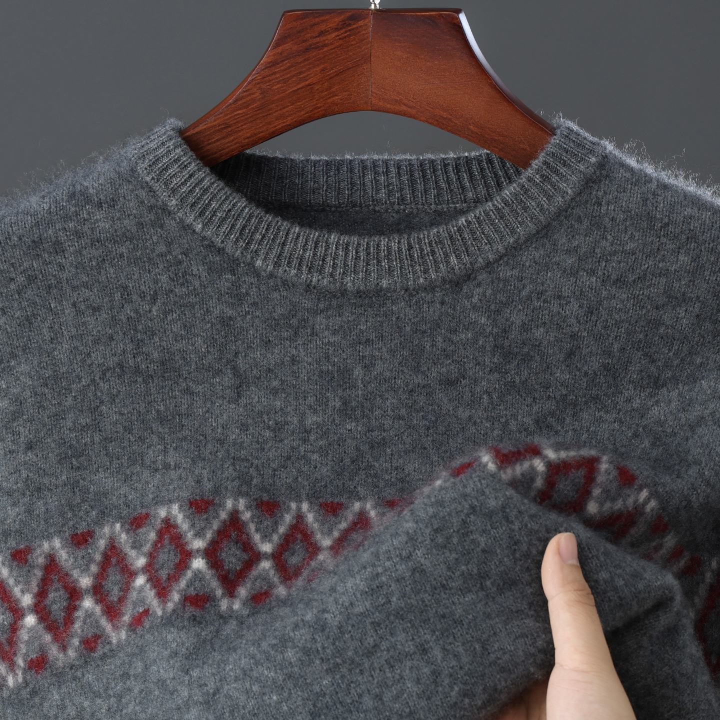 秋冬新款纯羊毛衫男士圆领提花