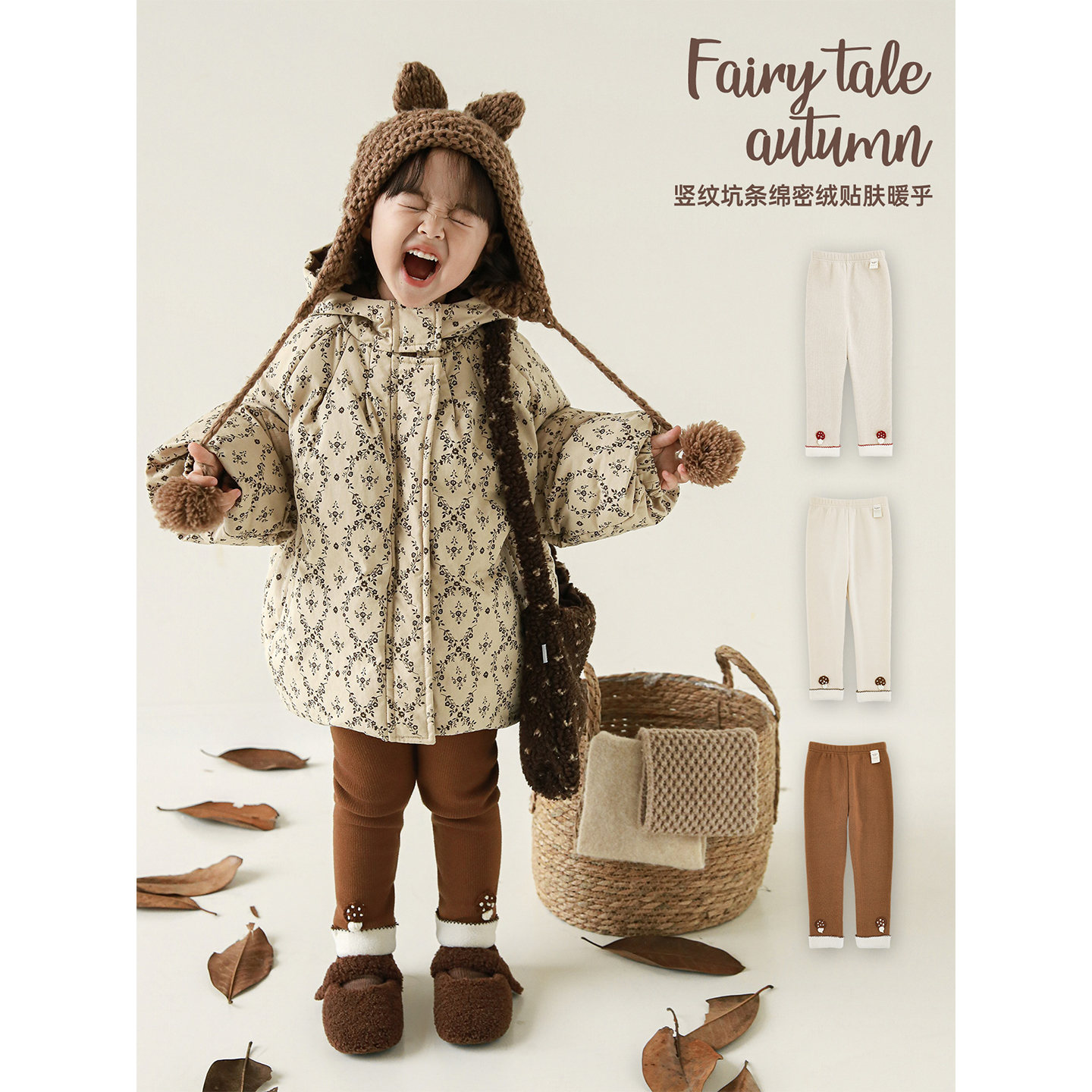 幼悠女童2025秋冬新款加绒加厚竖纹打底裤亲肤保暖女孩可爱连裤袜