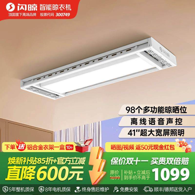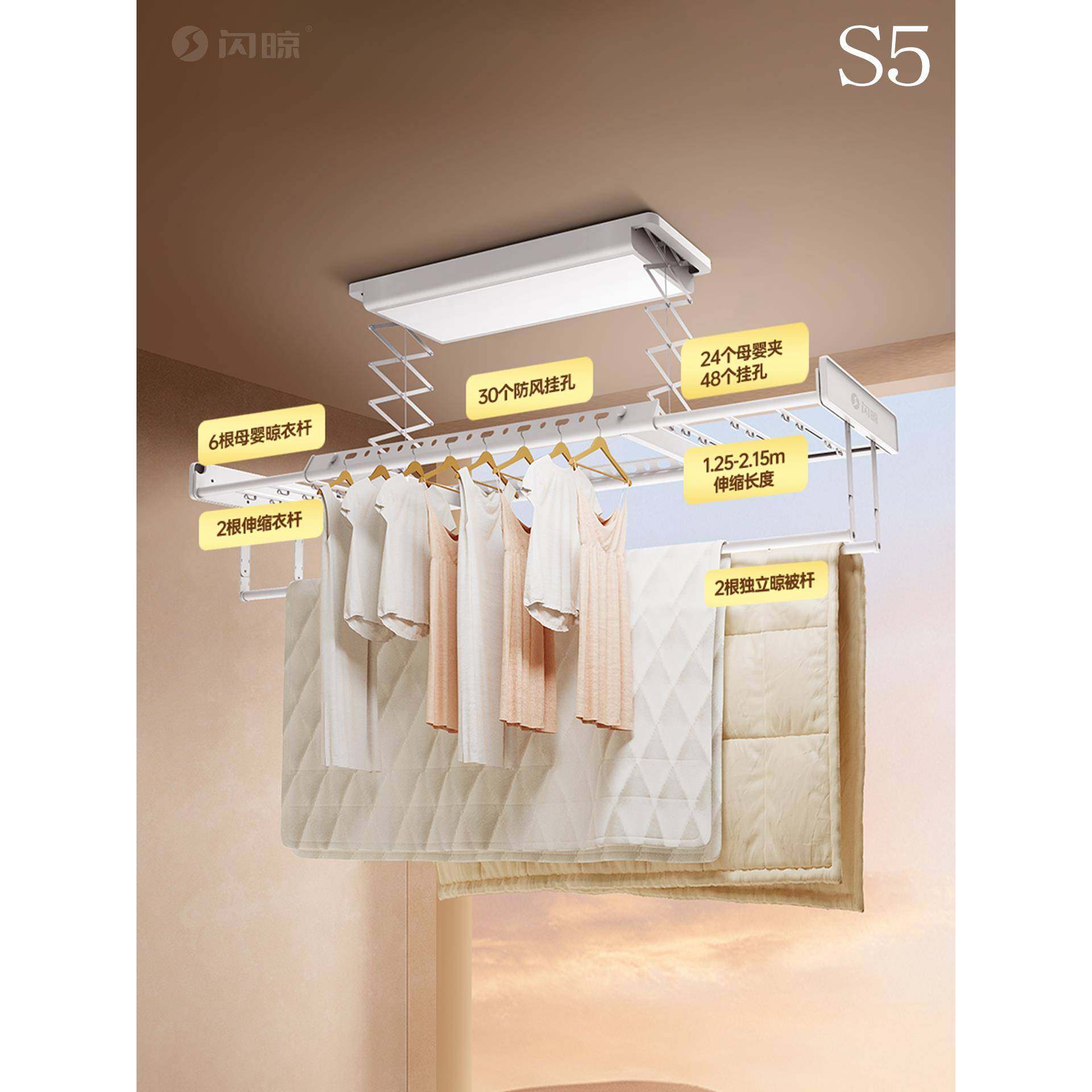 顶固电动晾衣架超薄升S5隐形智晒能晾衣家用降阳台伸缩隐形晾机架