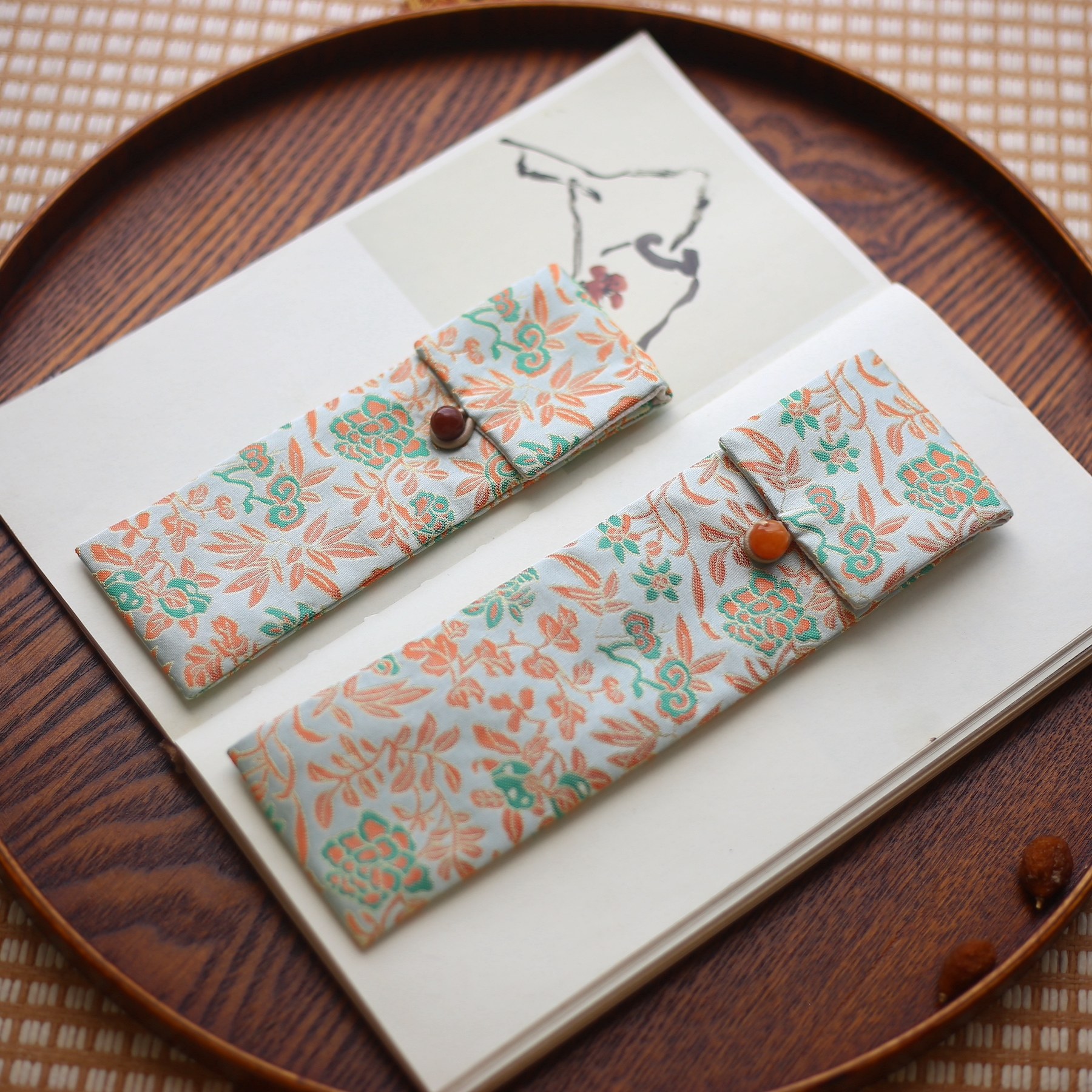 中式织锦发簪 钢笔书签香筒线香管香具文玩首饰便携收纳礼品布袋