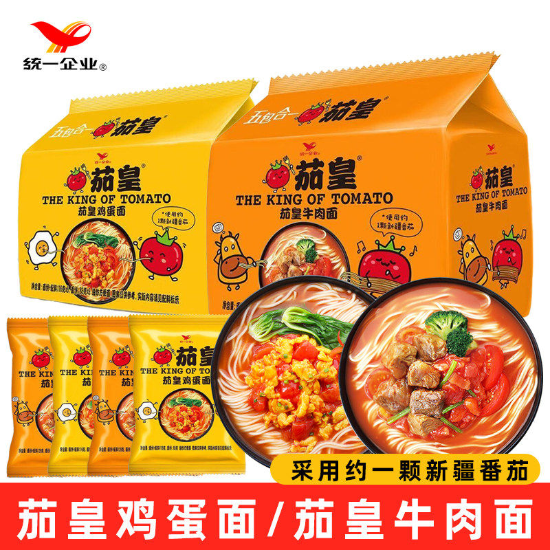 统一茄皇方便面新疆番茄鸡蛋面红烧牛肉面泡面袋装方便速食食品