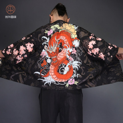日式和服男风衣中国龙T恤披风汉服唐装长袖外套日系道袍春季外套