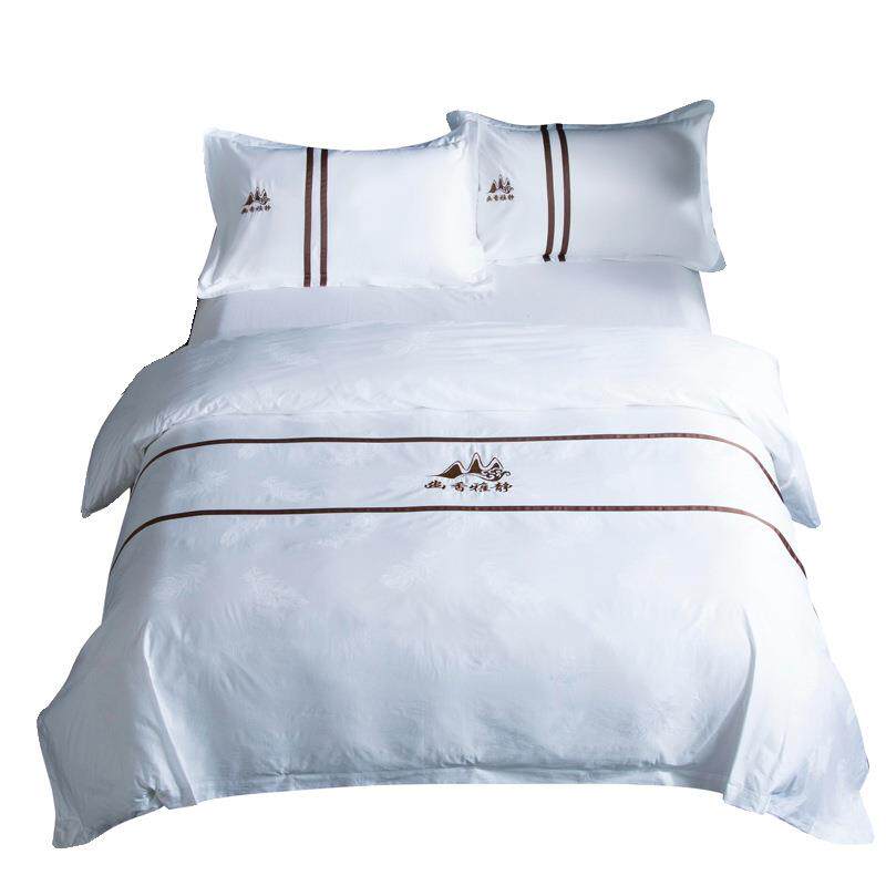 酒店宾馆草四件白色民被套床单宿床上布用品套被FS75781子一整套J