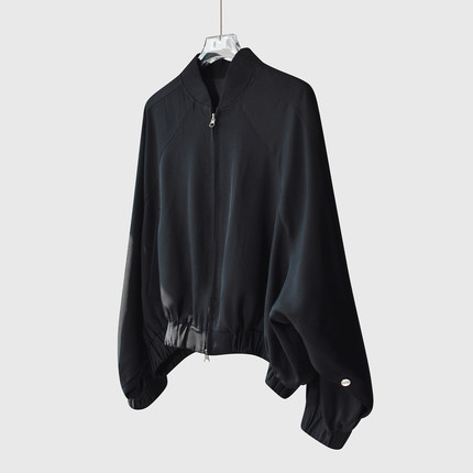 宽松藏肉踩准时髦100%醋酸短款夹克外套女春秋蝙蝠袖高级感棒球服