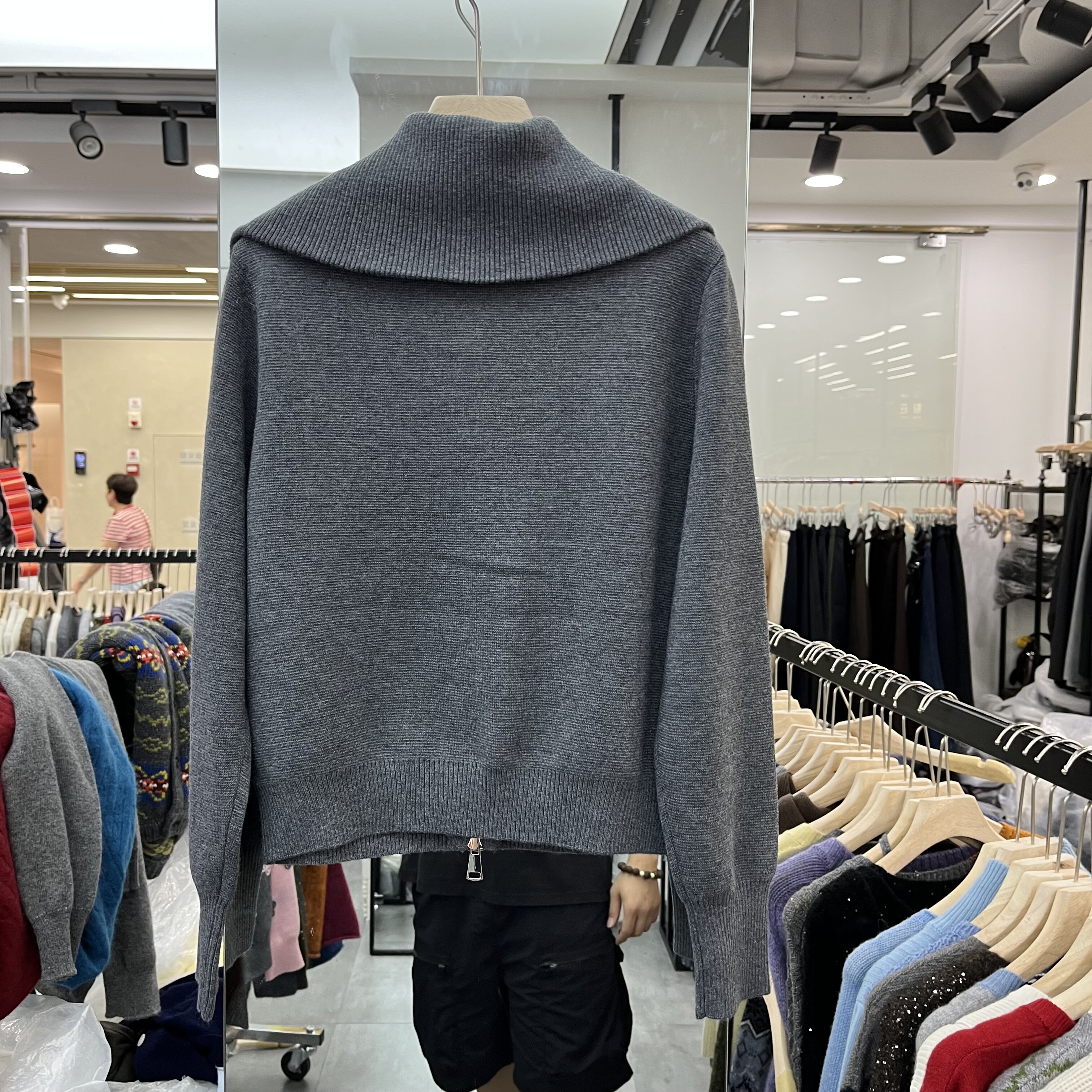 欧洲站2025秋季新款女士翻领纯色双口袋细羊毛长袖开衫欧货针织衫