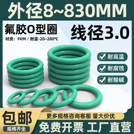 氟胶O型圈耐高温密封圈外径8-830mm*线径3mm氟胶橡胶圈大尺寸