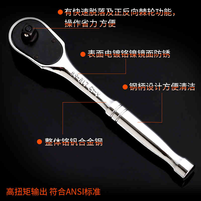 史丹利钢柄棘轮扳手汽修配件快速脱换向工具89-817/818/819-22
