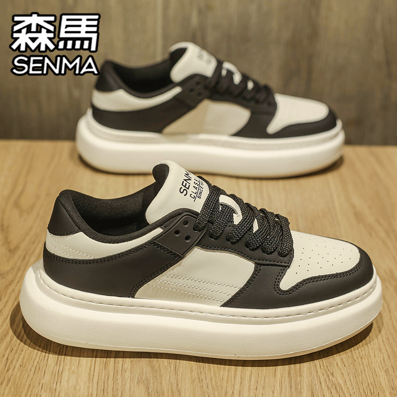 森马男鞋2025新款冬季皮面防水休闲小麦色板鞋运动厚底增高潮鞋子