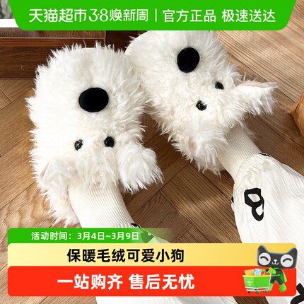 西高地潦草小狗棉拖鞋女秋冬季可爱卡通室内学生宿舍加绒毛毛拖鞋