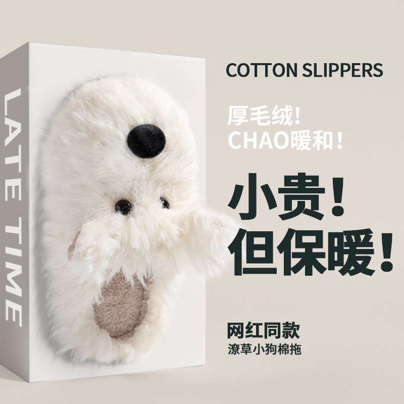 latetime西高地潦草小狗棉拖鞋
