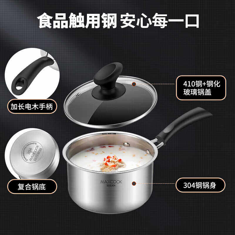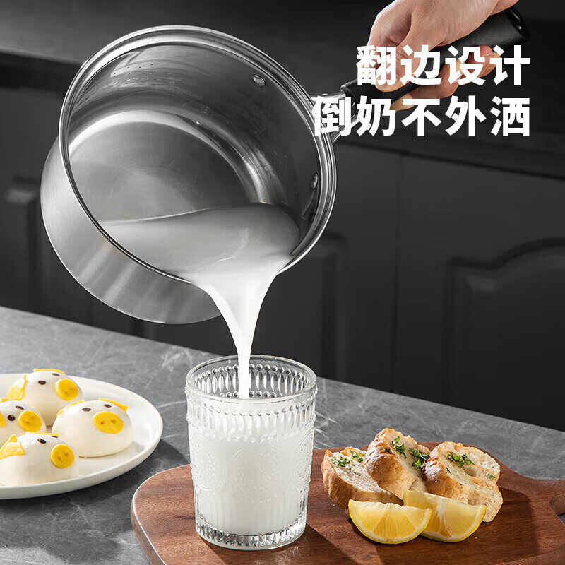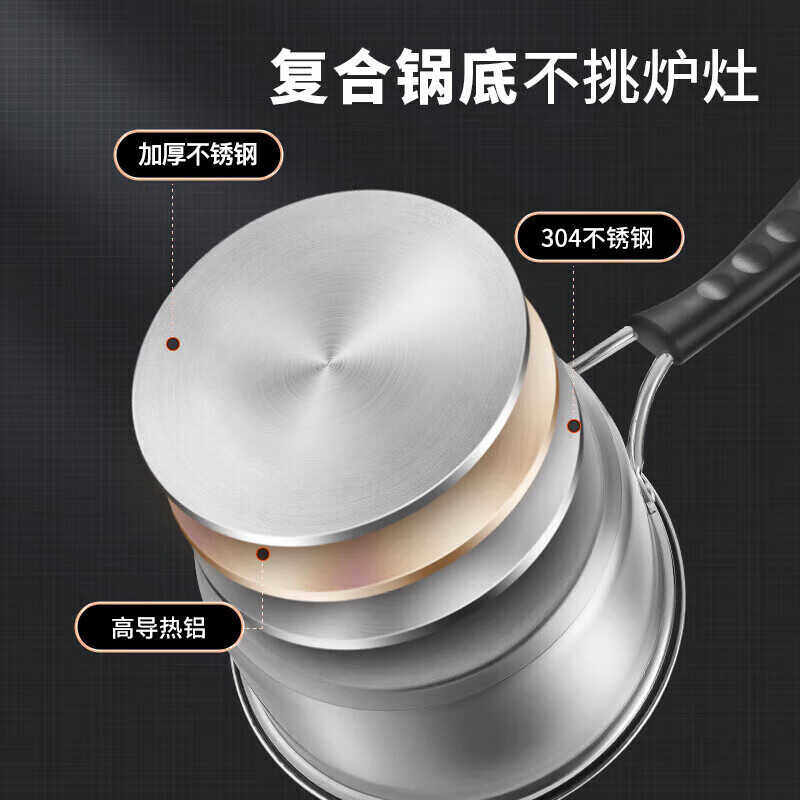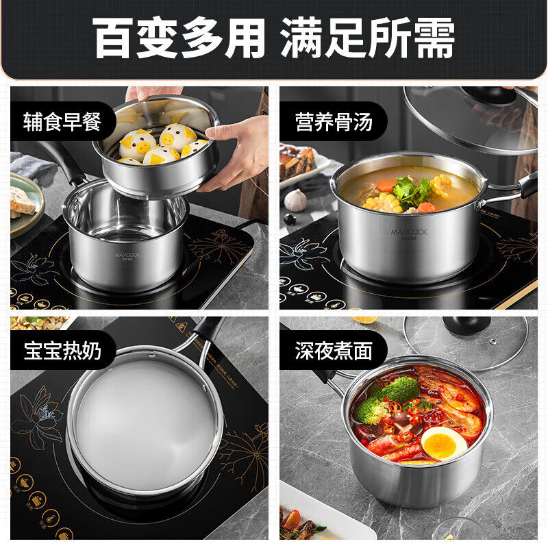 美厨奶锅304不锈钢小汤锅泡面煮奶辅食锅加厚复底燃气磁炉通用
