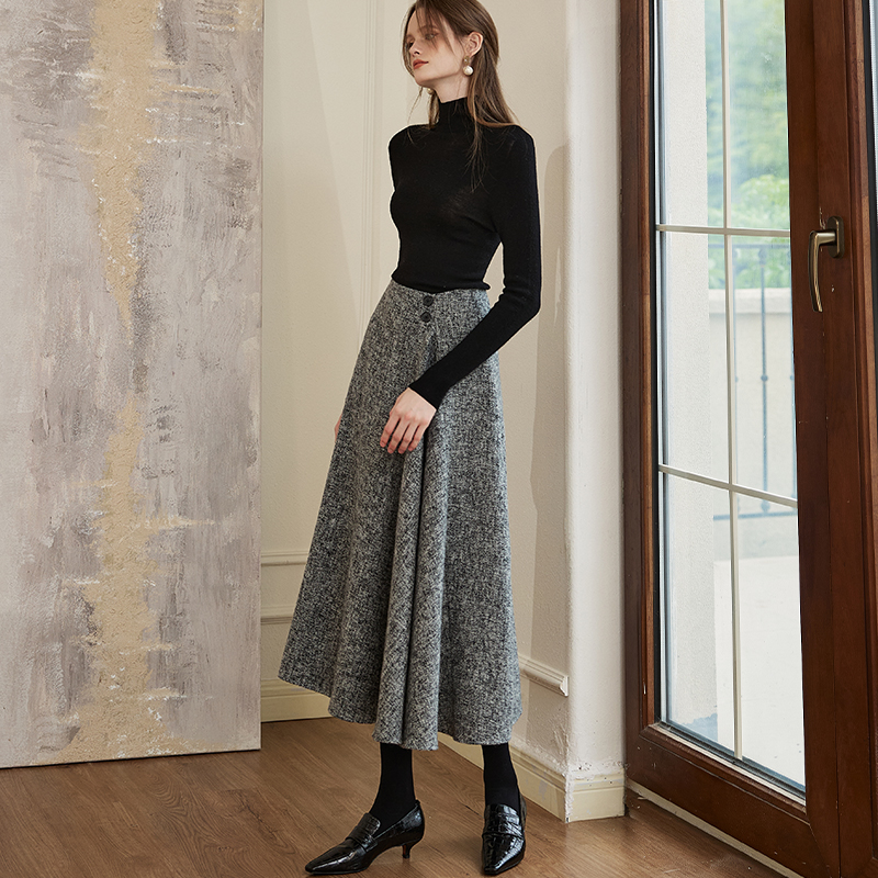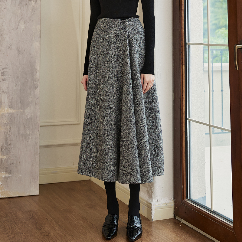 罗衣气质大摆褶皱半身裙2025冬季新款高级毛呢通勤高腰裙子09634