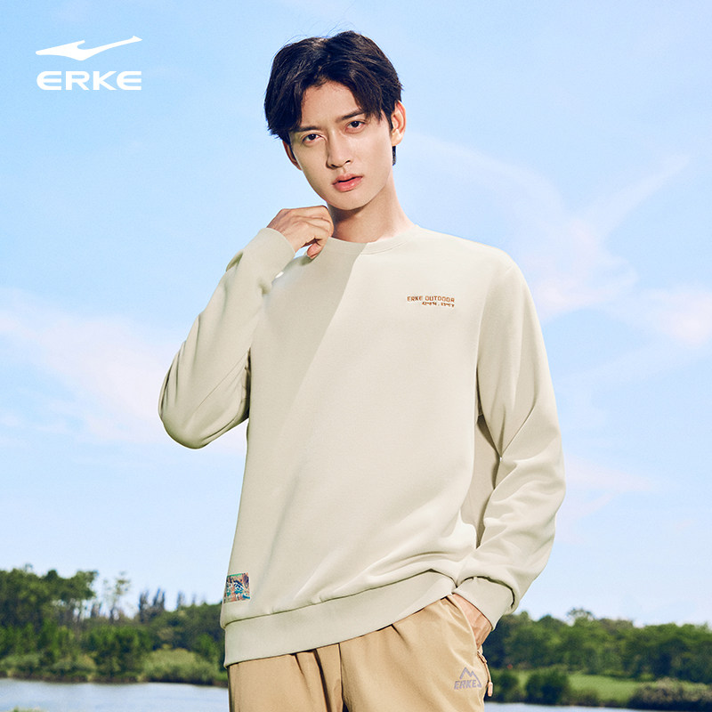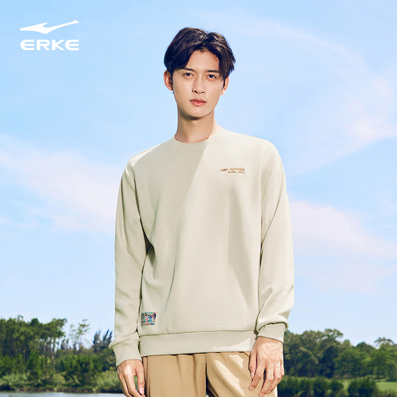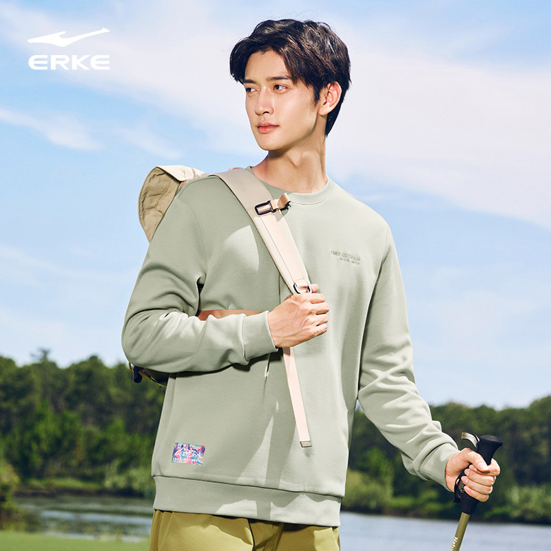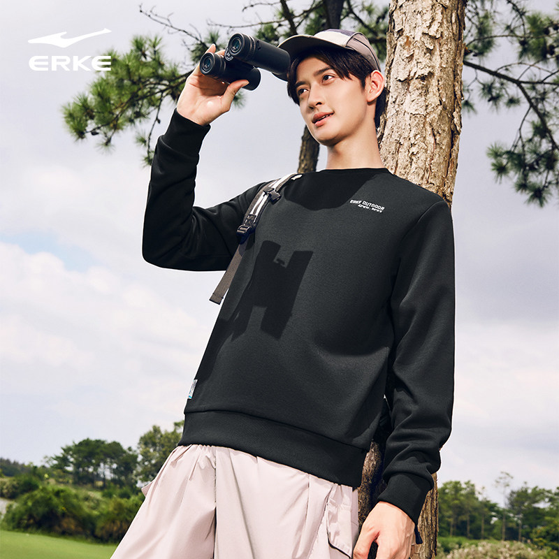 鸿星尔克加绒卫衣男款2025秋季新款男士户外圆领套头长袖运动上衣