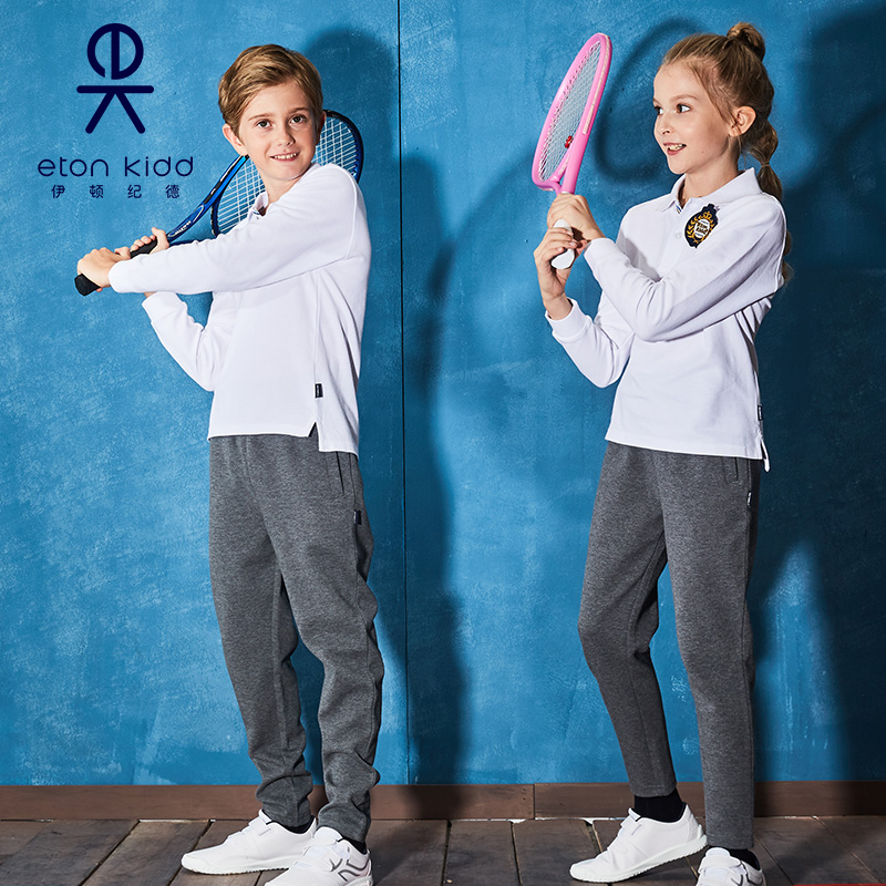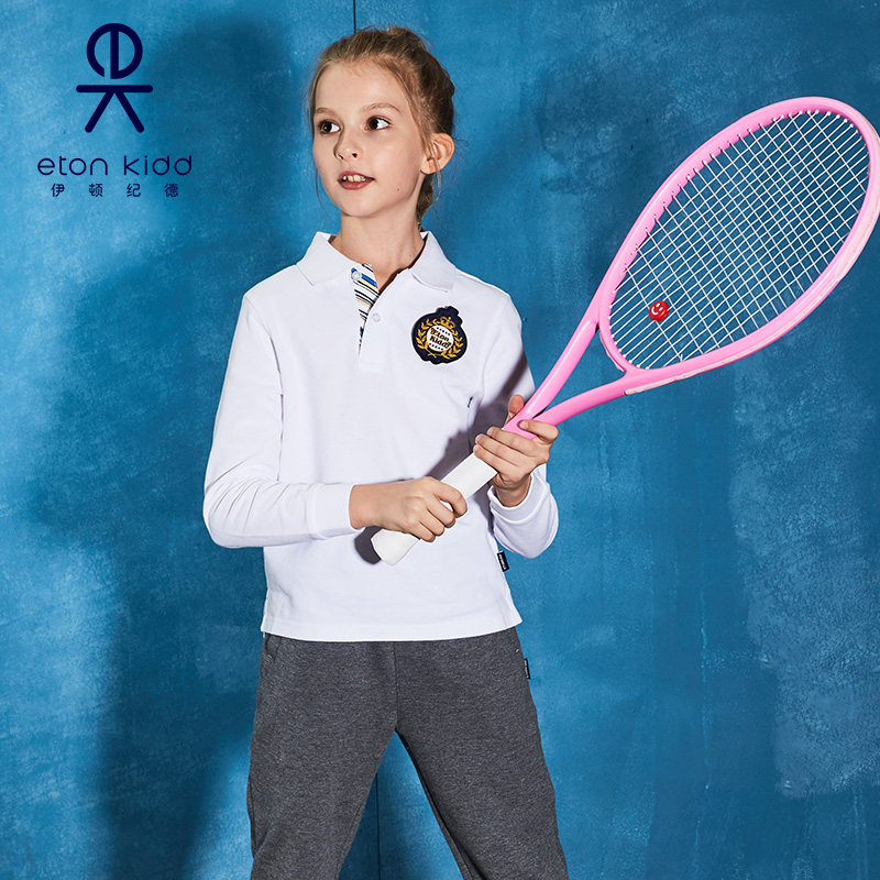 伊顿纪德校服学生长袖POLO男生女生白色彩条贴布长袖T恤09T102