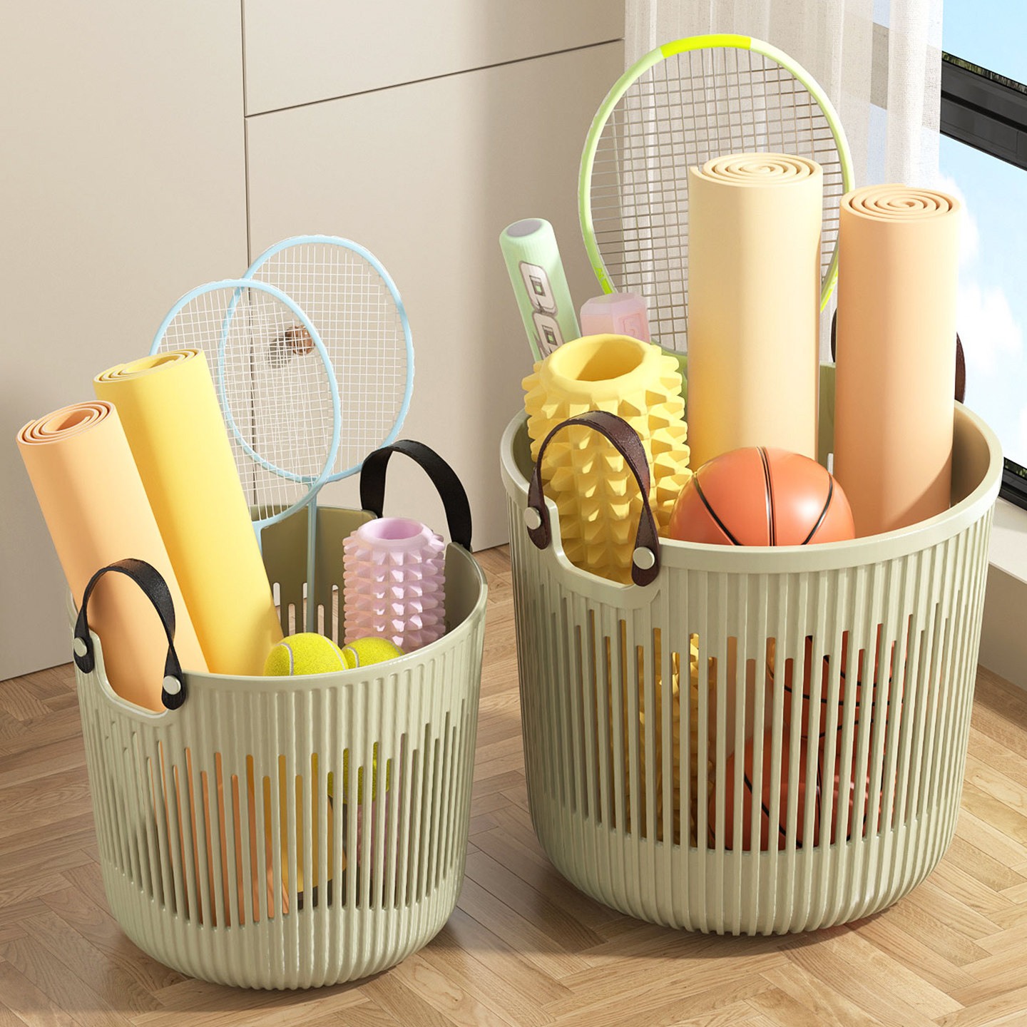 篮球收纳架球类置物架收纳筐桶球架健身器材瑜伽垫运动羽毛球拍