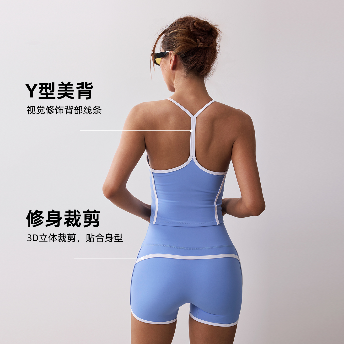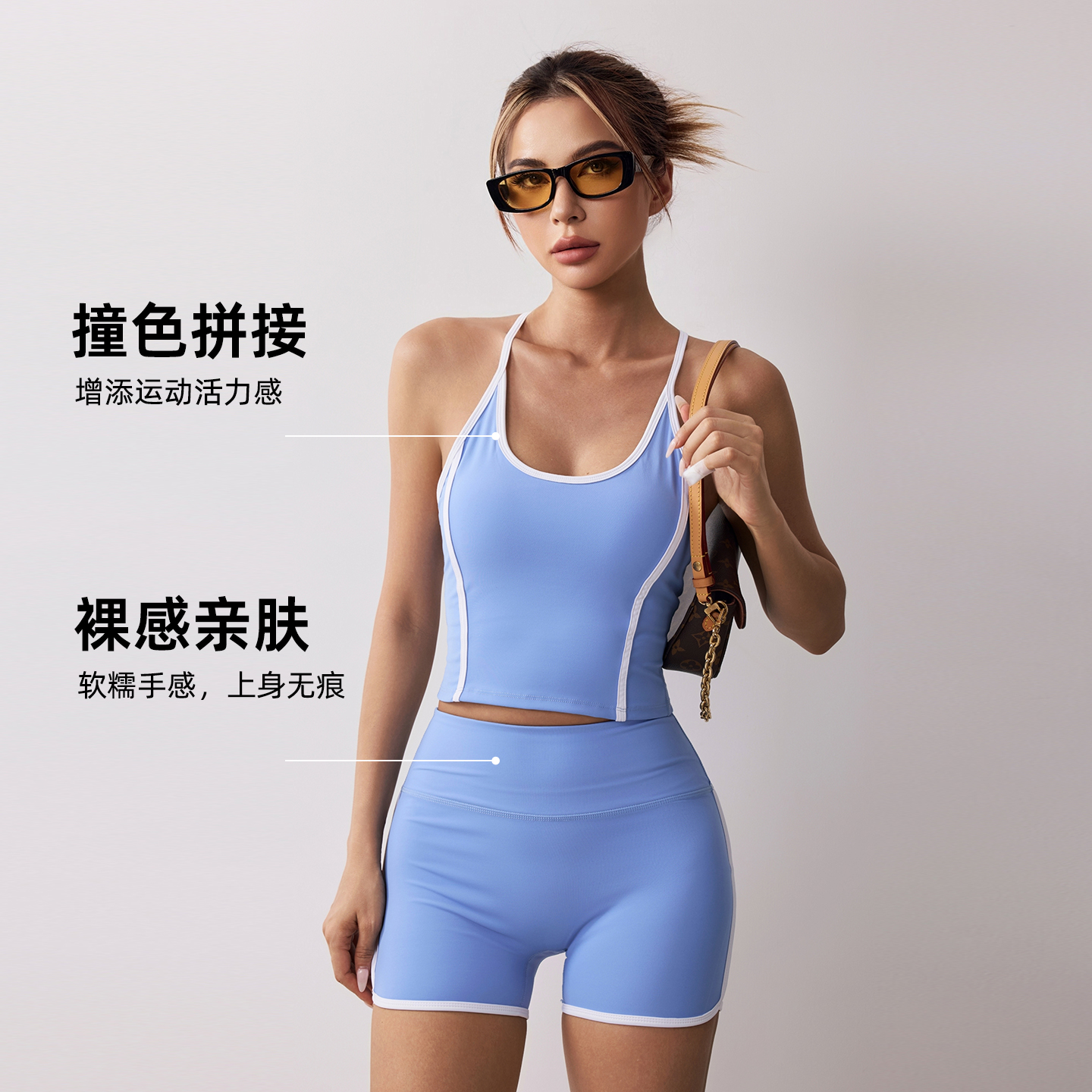 fitlife健身套装女U领裸感背心撞色修身速干跑步运动短裤瑜伽服