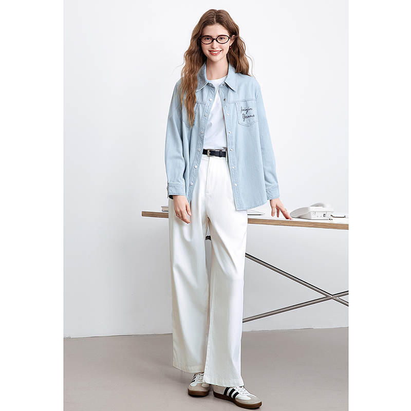 betu百图浅蓝色牛仔衬衫女长袖2025年秋季新款宽松显瘦衬衣外套