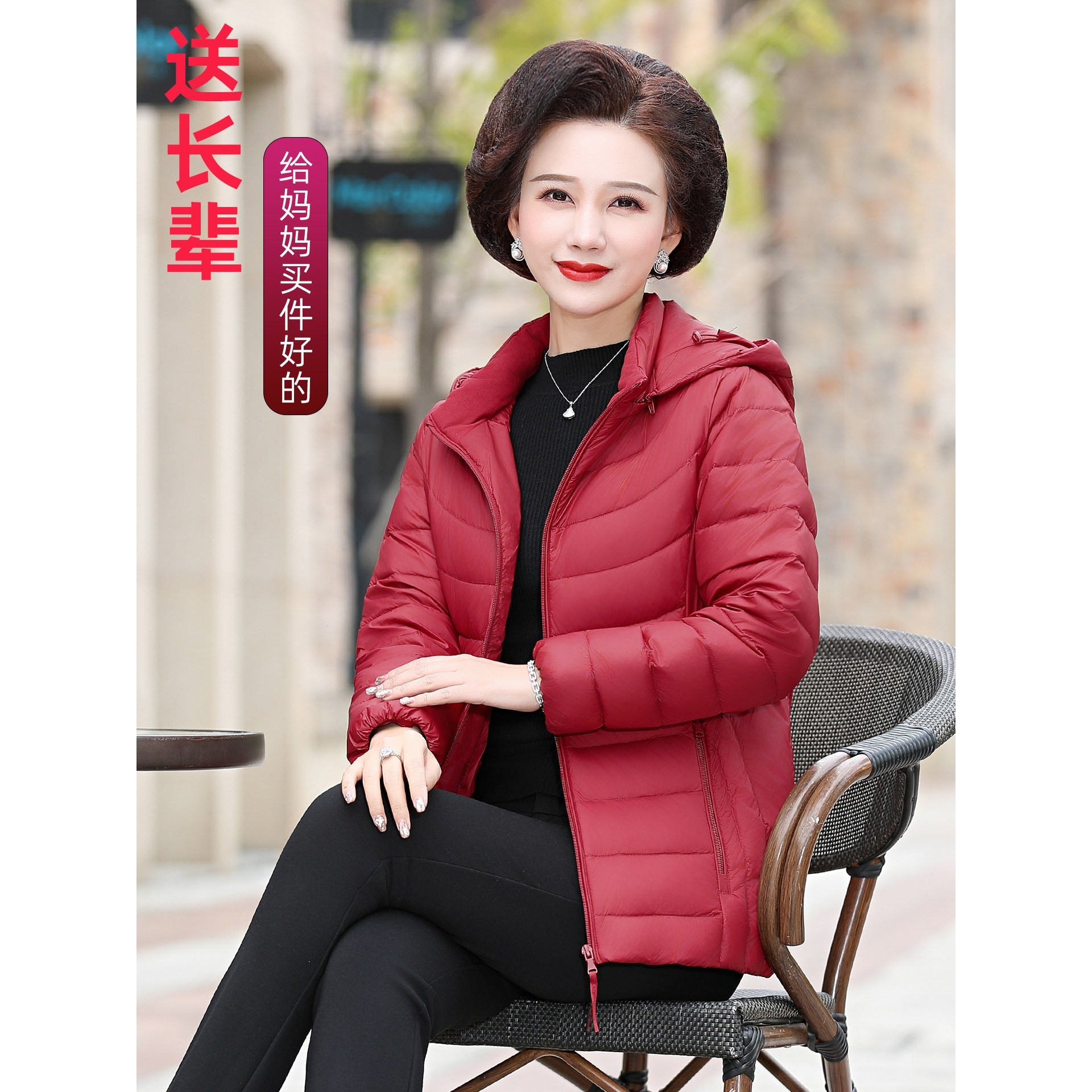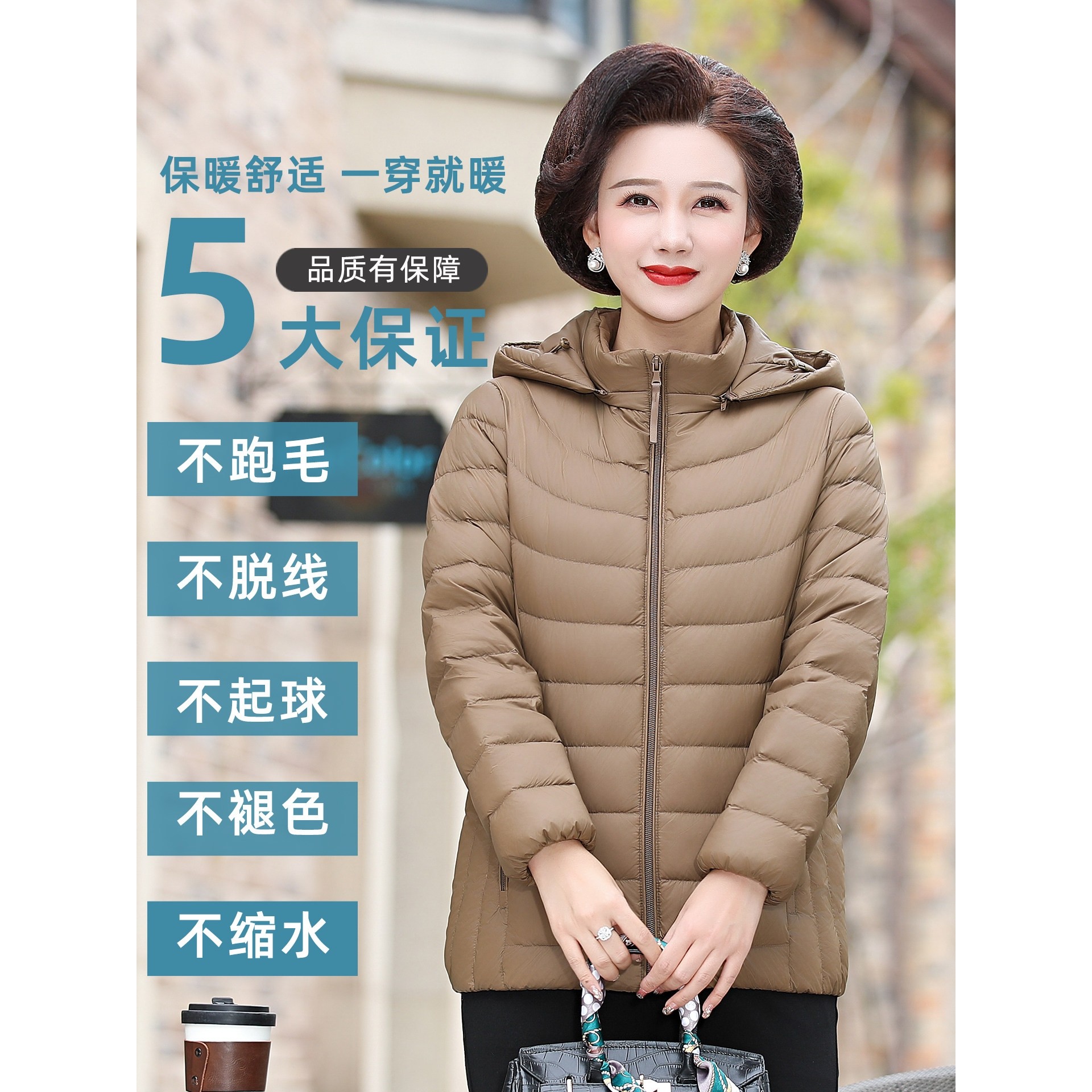 凯乐石薄荷新款羽绒服妈妈装轻薄款脱卸帽轻便保暖冬装中老年人洋