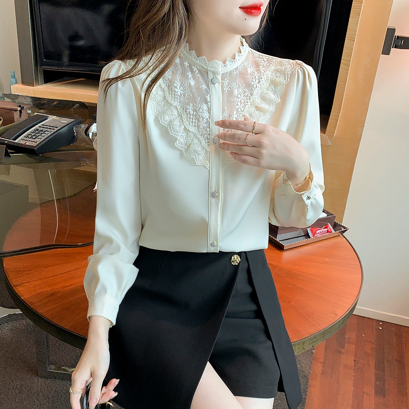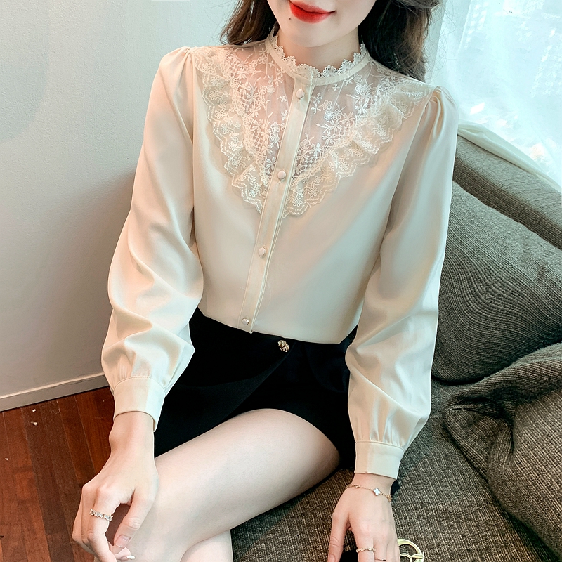 法式气质立领雪纺衬衫女2025秋季新款时尚设计感小众百搭长袖上衣