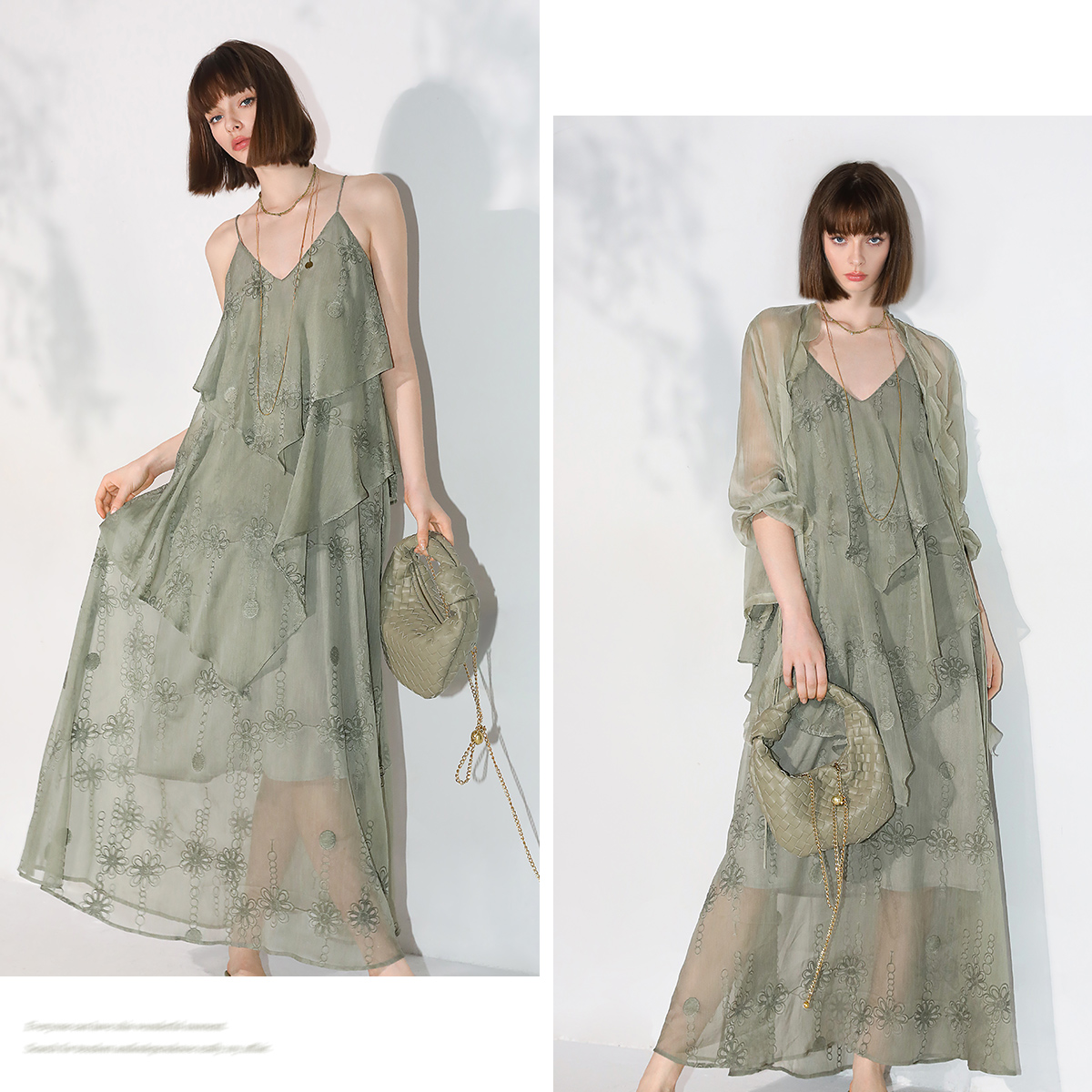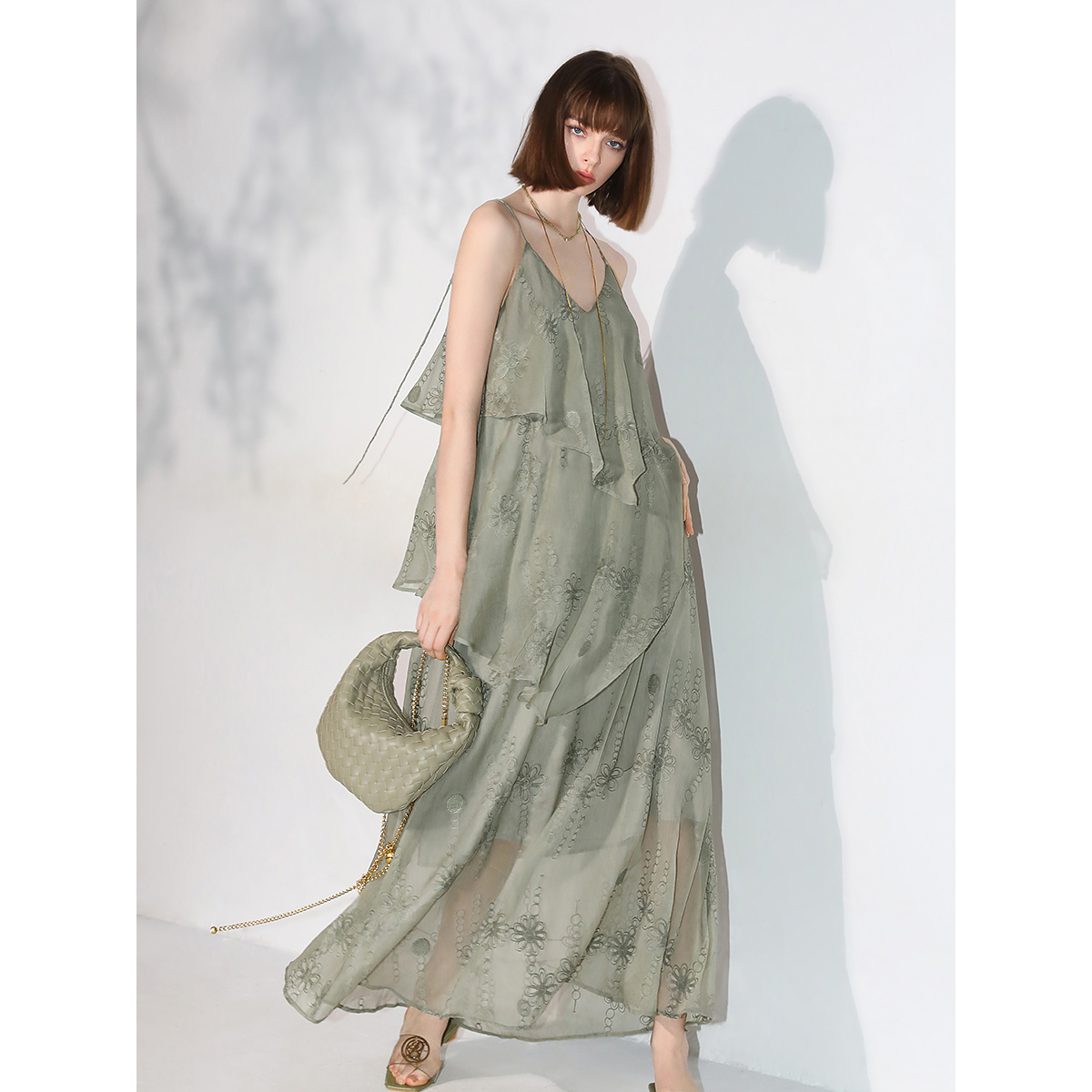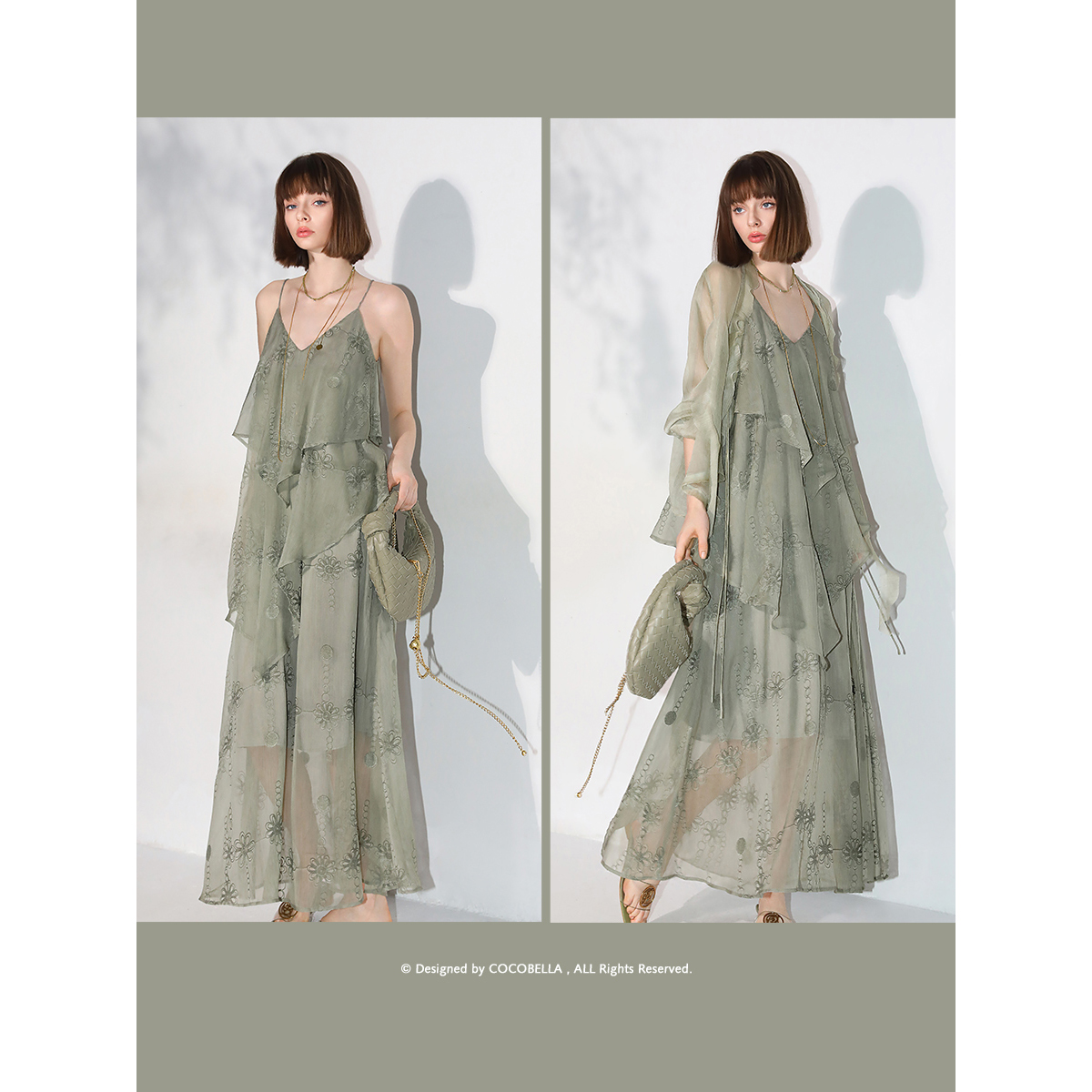 COCOBELLA十万针刺绣炒色吊带裙