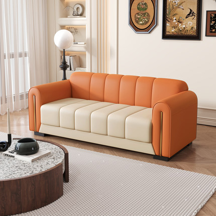 新款轻奢小户型沙发客厅拼色双人三人位直排民宿服装店皮艺小沙发