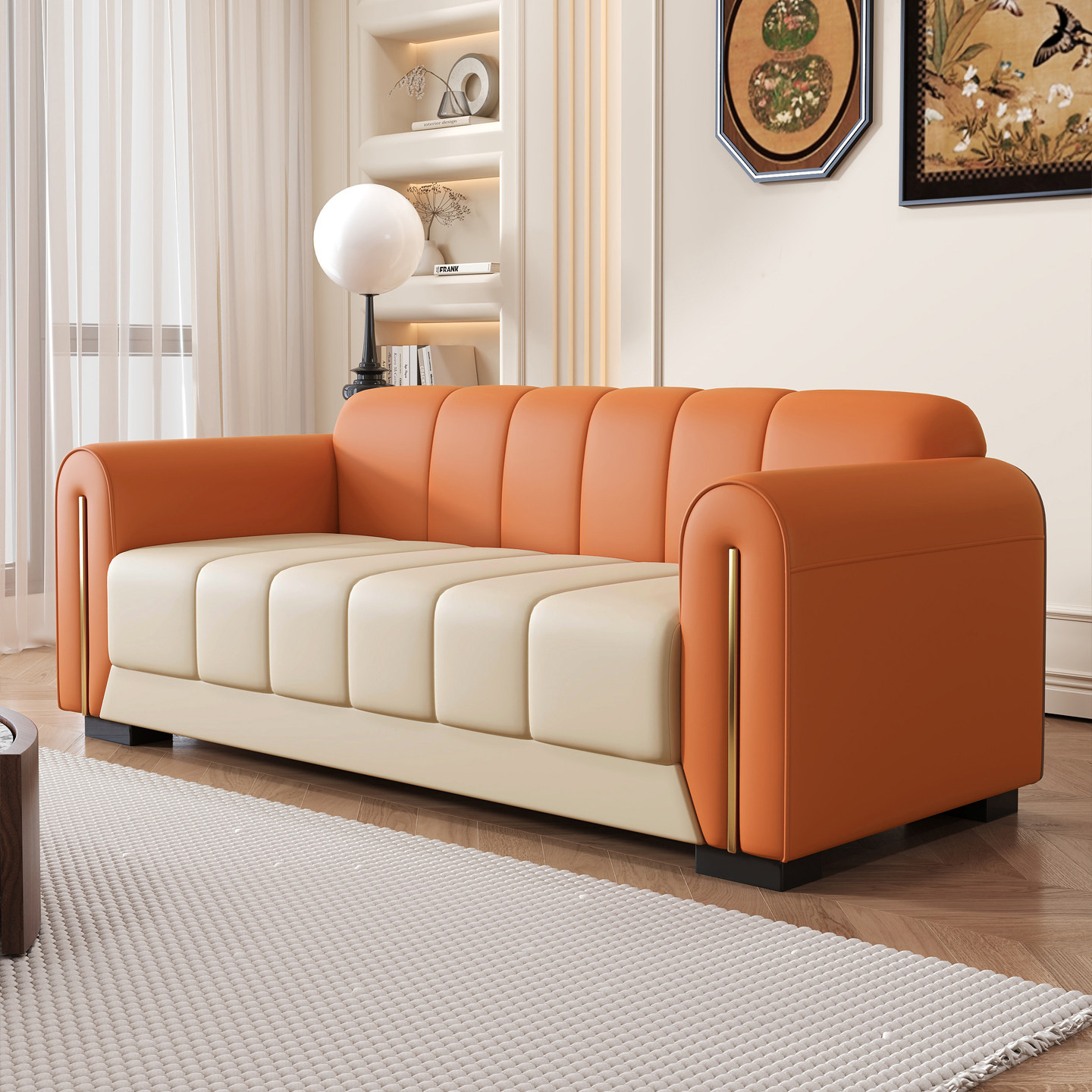 新款轻奢拼色双人三人位小沙发