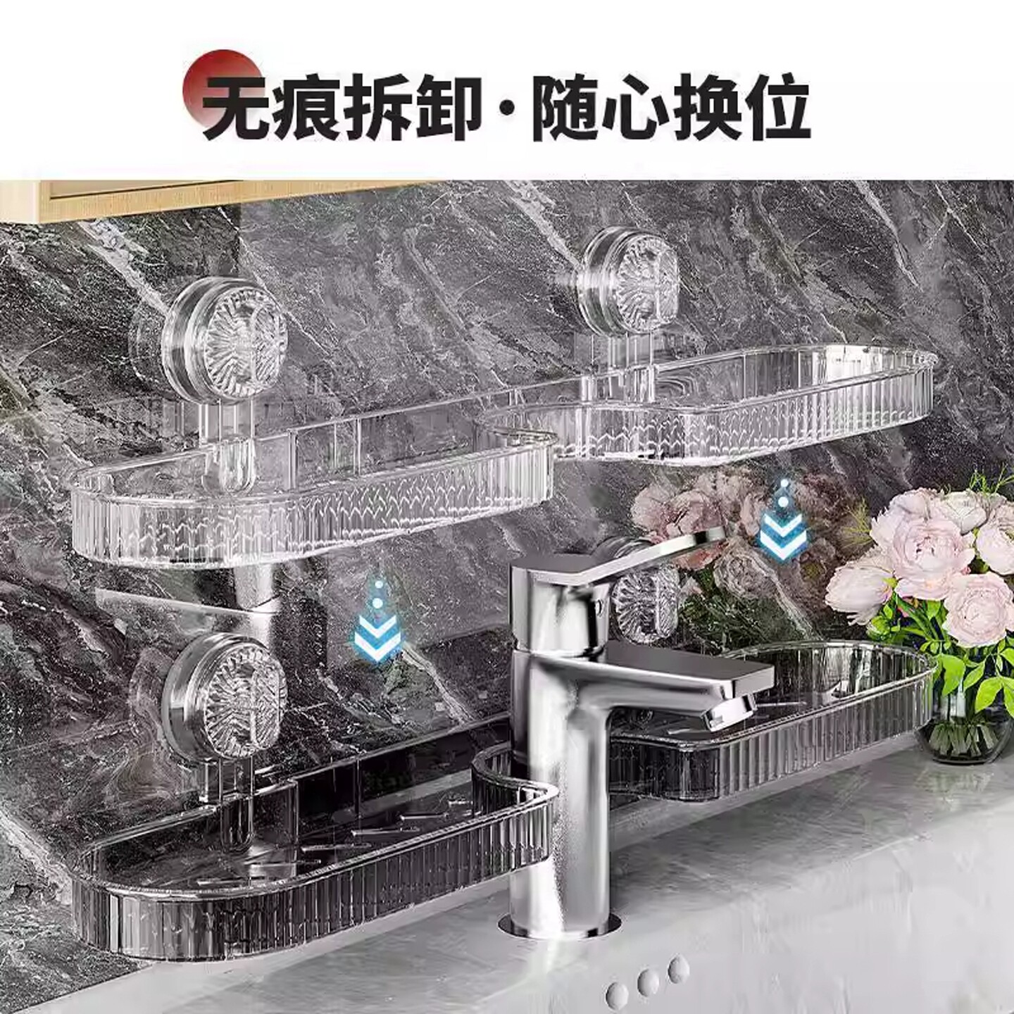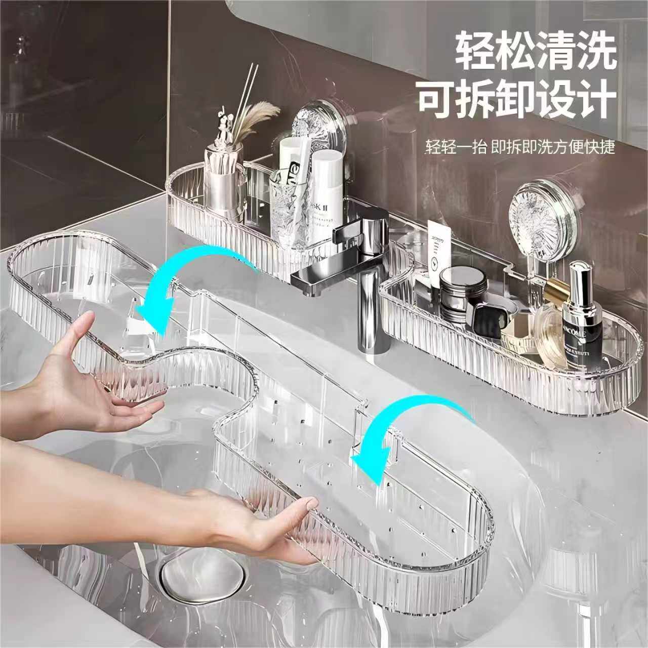 洗漱台置物架免打孔吸盘壁挂式浴室洗手卫生间镜前水龙头收纳架子