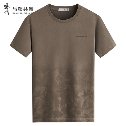 【凉感冰氧吧】与狼共舞圆领短袖T恤男2025夏季印花亲肤舒适上衣