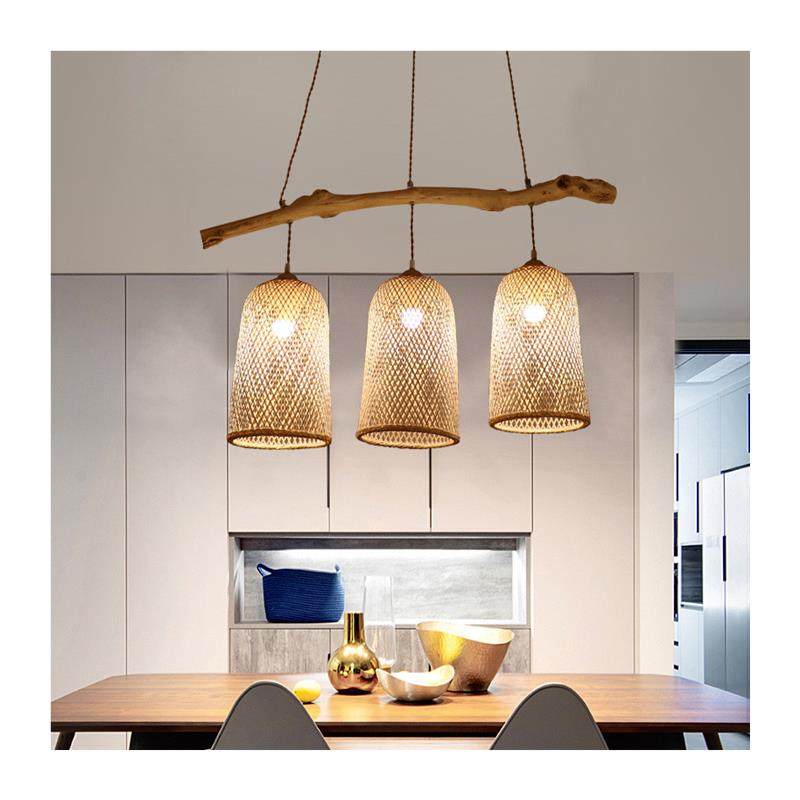 一件代发吊灯新中式禅意茶室灯创意个性三头餐厅树枝灯竹编吊灯