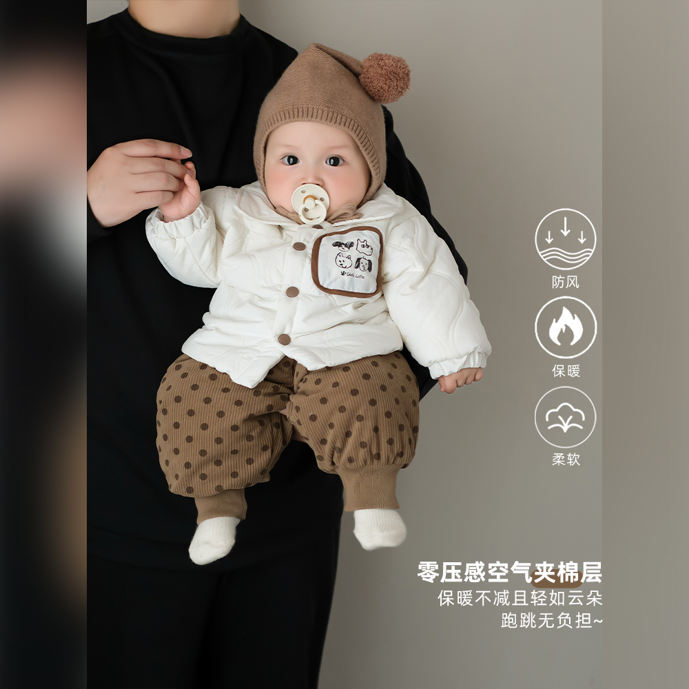 男宝宝冬季套装儿童棉服外套加绒裤子冬装婴儿分体两件套衣服加厚
