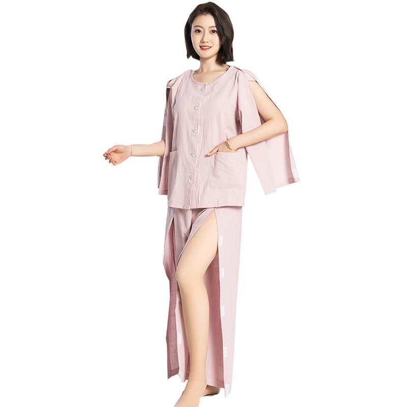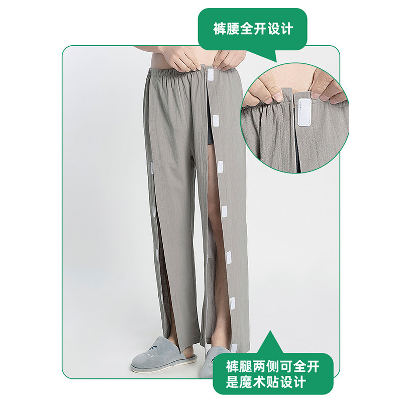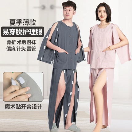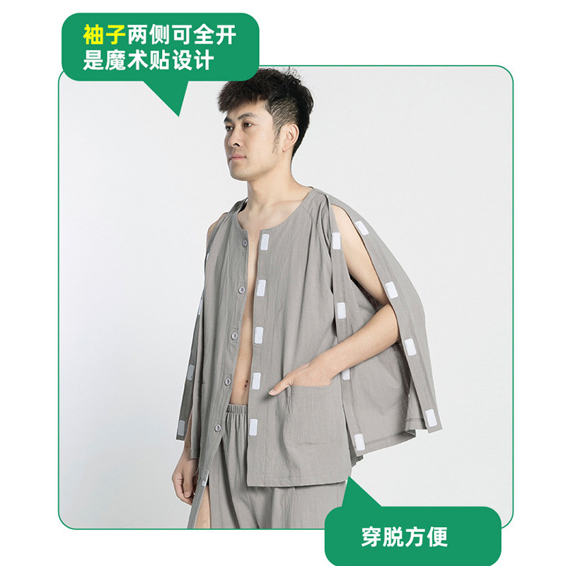 全开式护理服老人瘫痪卧床衣服针灸康复住院服易穿脱粘扣开边裤夏