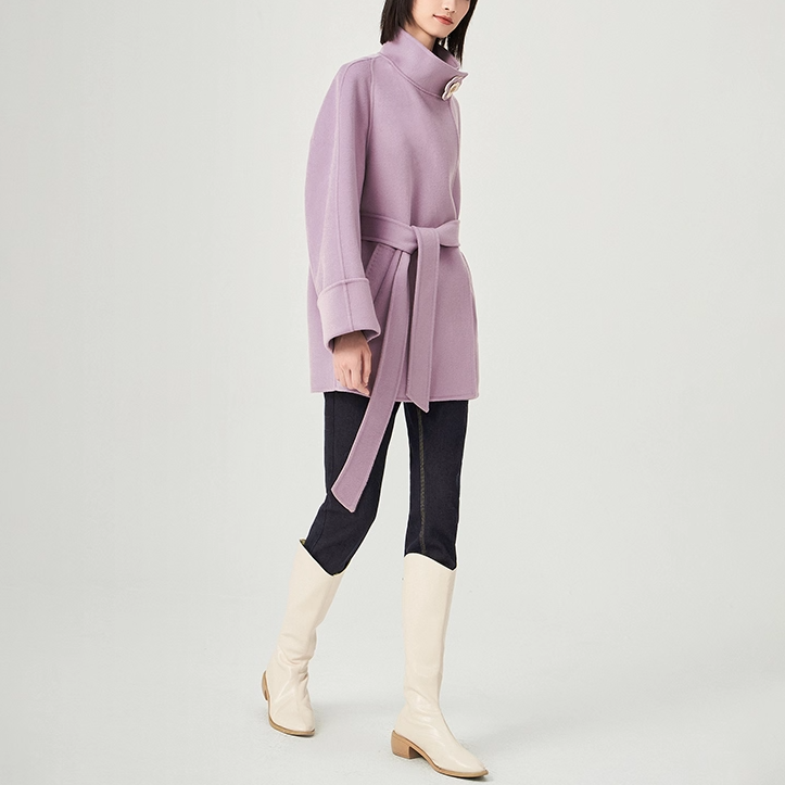 艺之卉羊毛双面呢山茶花刺绣大衣