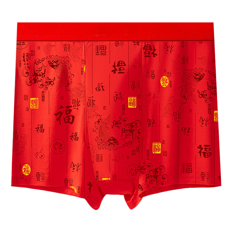 男士大红色内裤加肥加大再生纤维