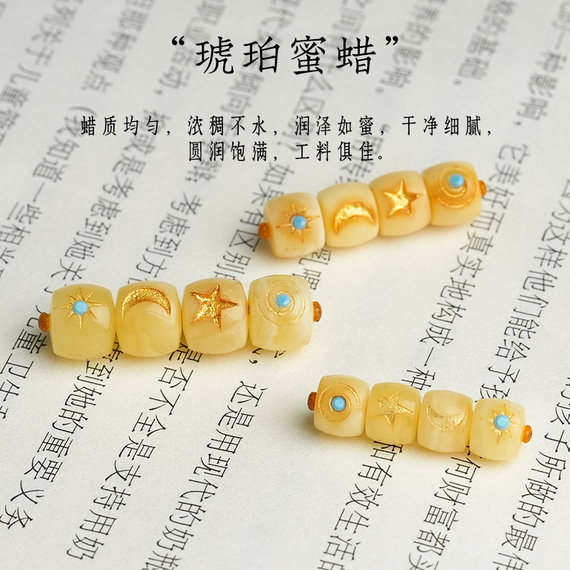 原矿蜜蜡直切老型桶珠日月星辰腰珠隔珠金刚星月文玩手串diy配饰