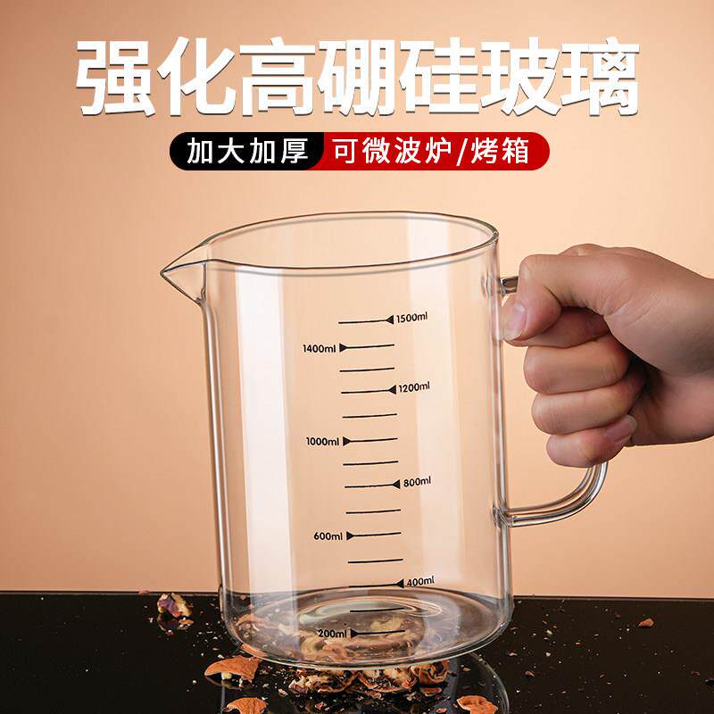 德国豆浆过滤量杯带刻度食品级耐高温高硼硅玻璃量有手柄厨房中药