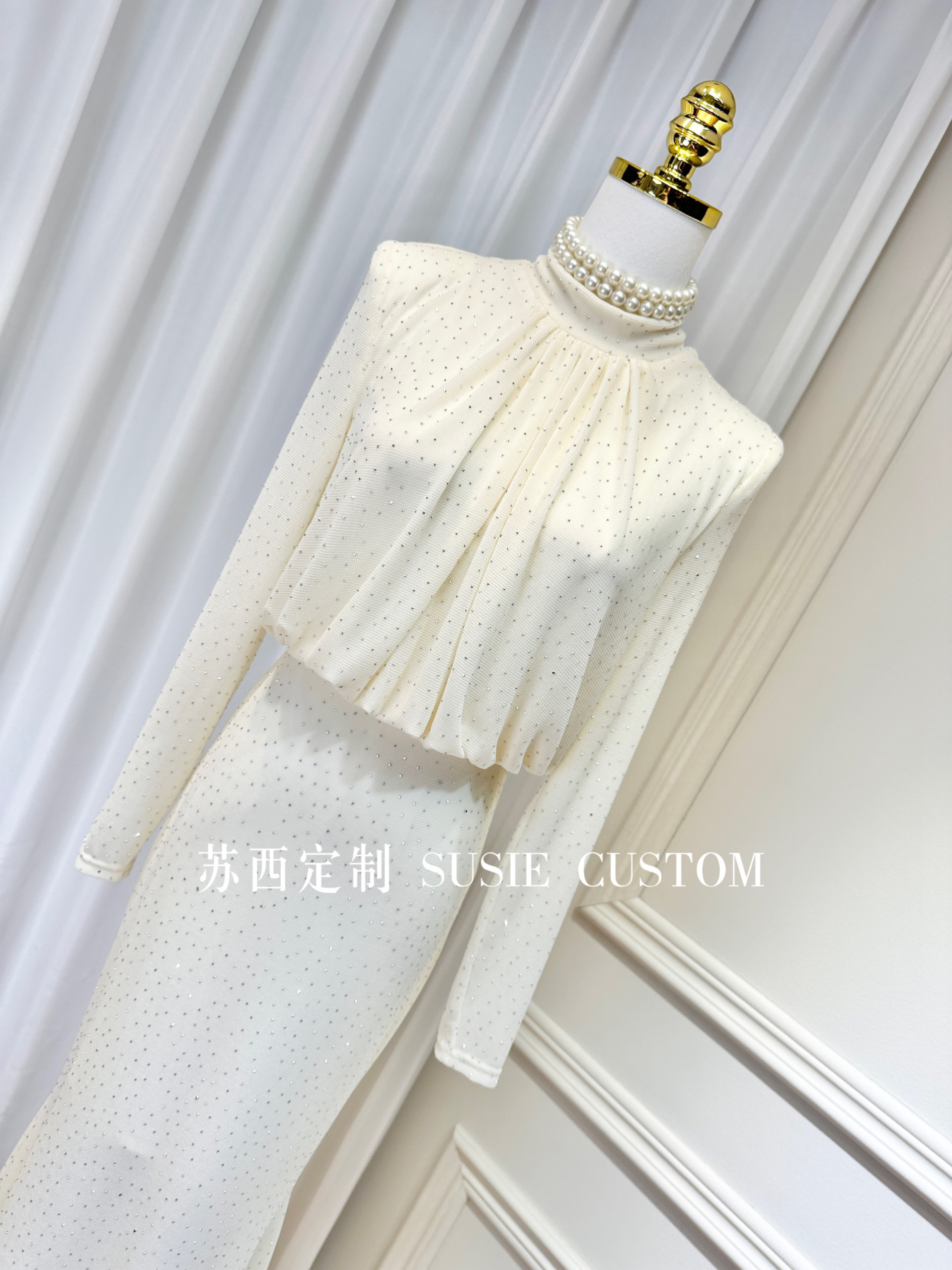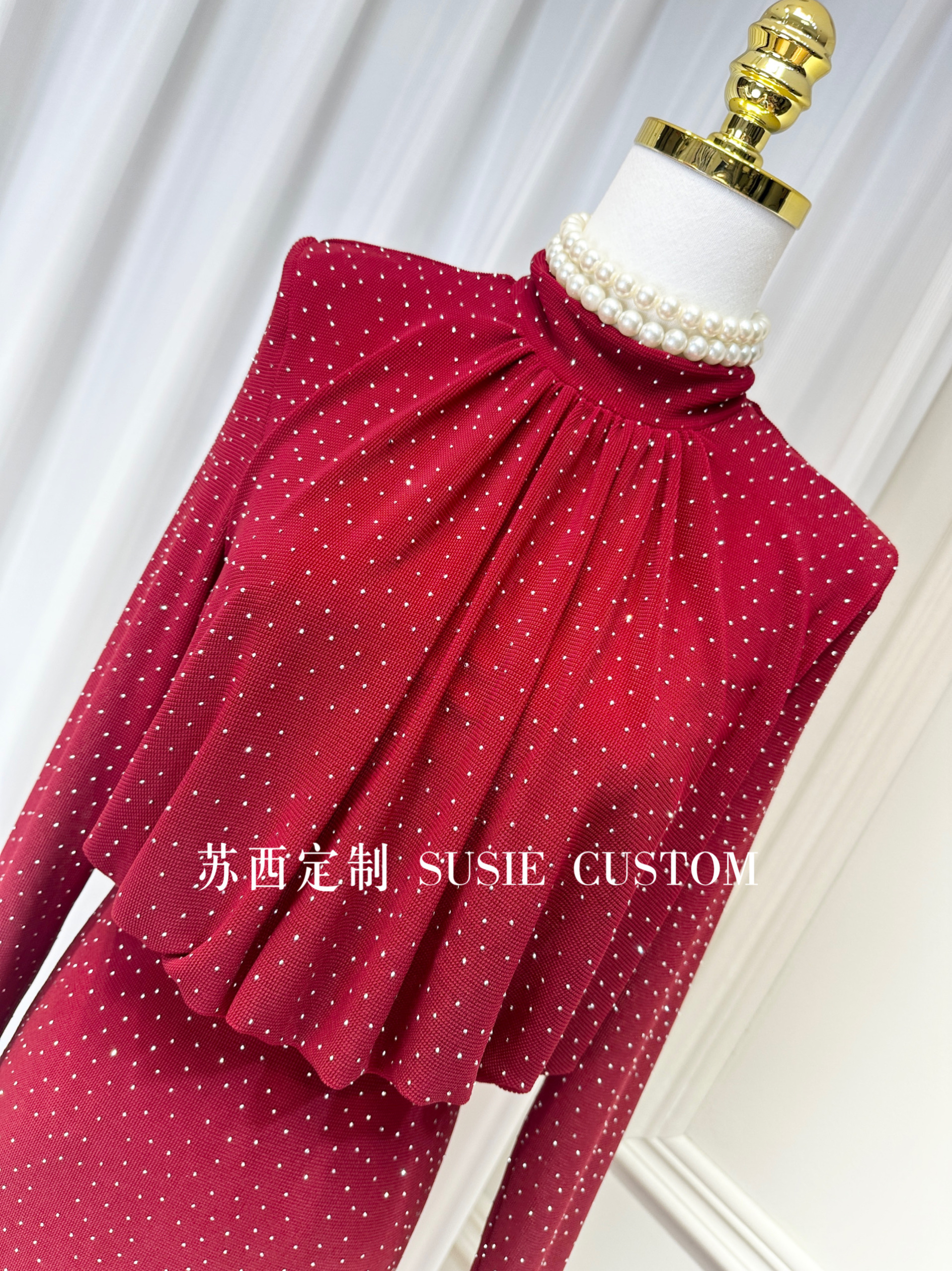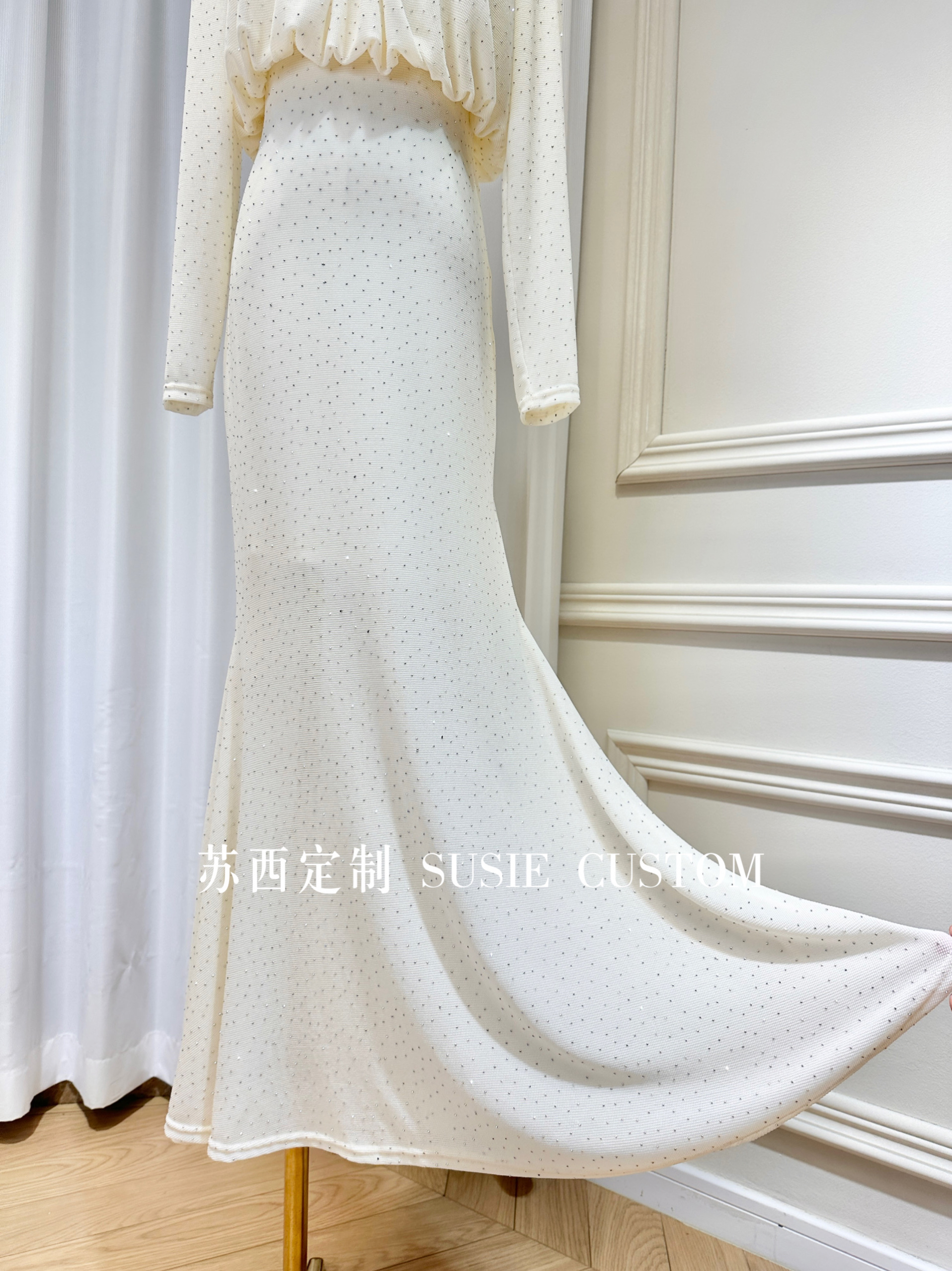 定制高级感好看正式场合气质闪闪烫钻弹力收腰包臀鱼尾长裙连衣裙