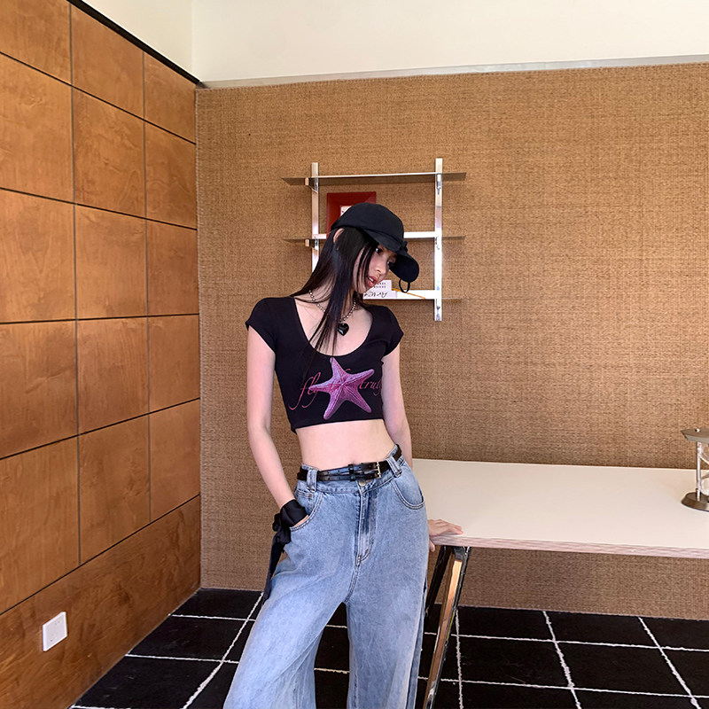 复古海星印花短袖T恤女短上衣