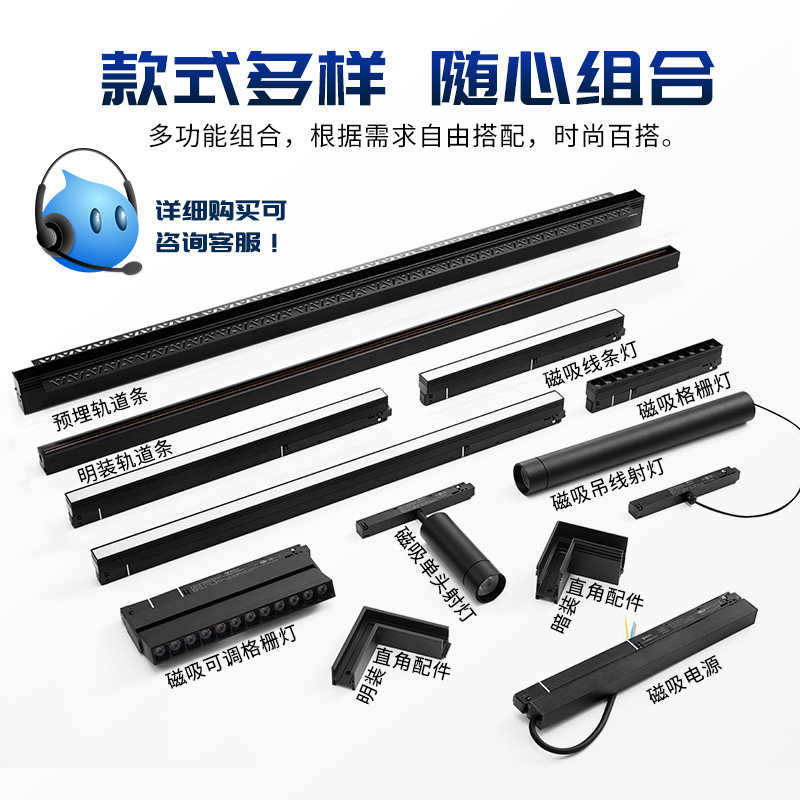 led灯具无主灯公牛磁吸轨道灯