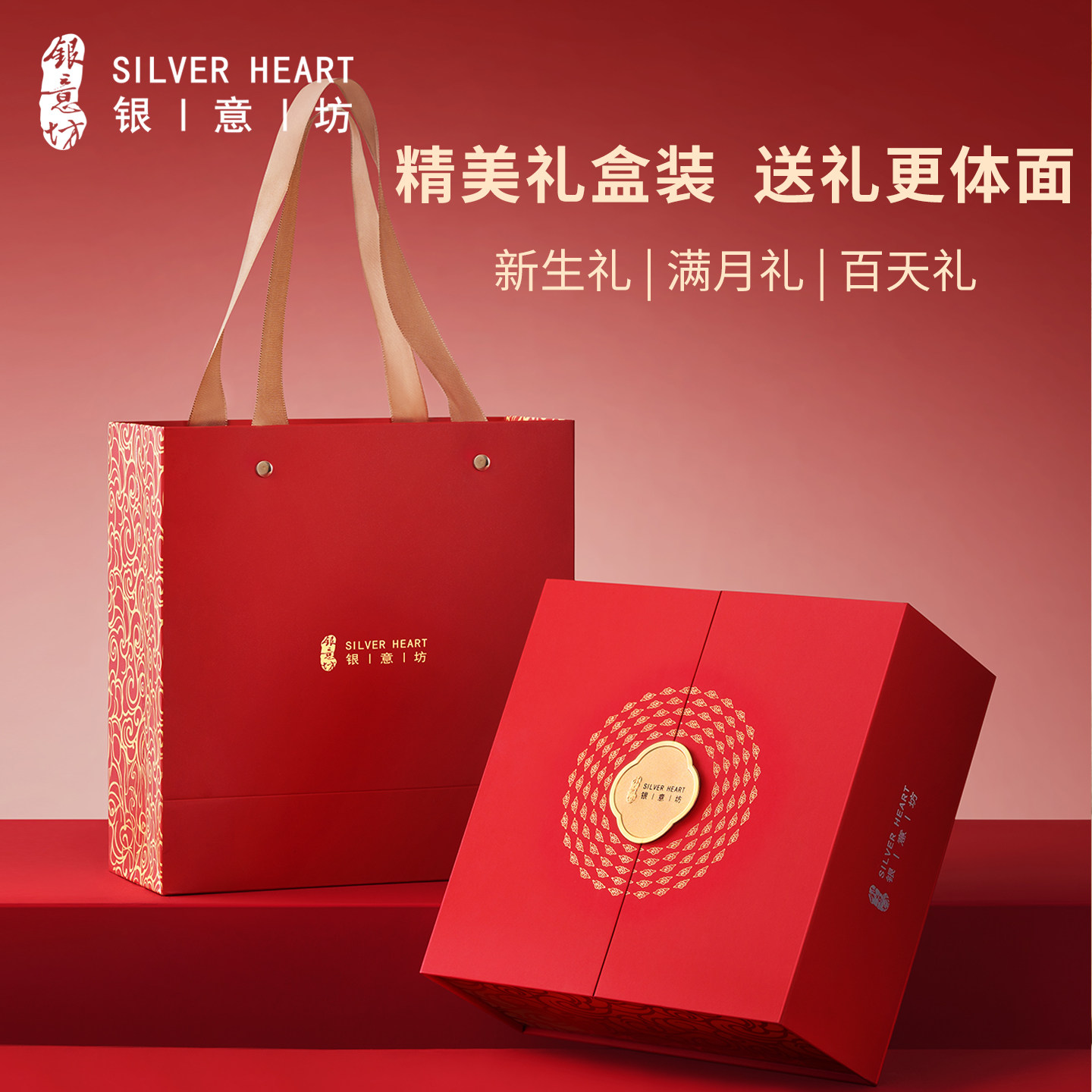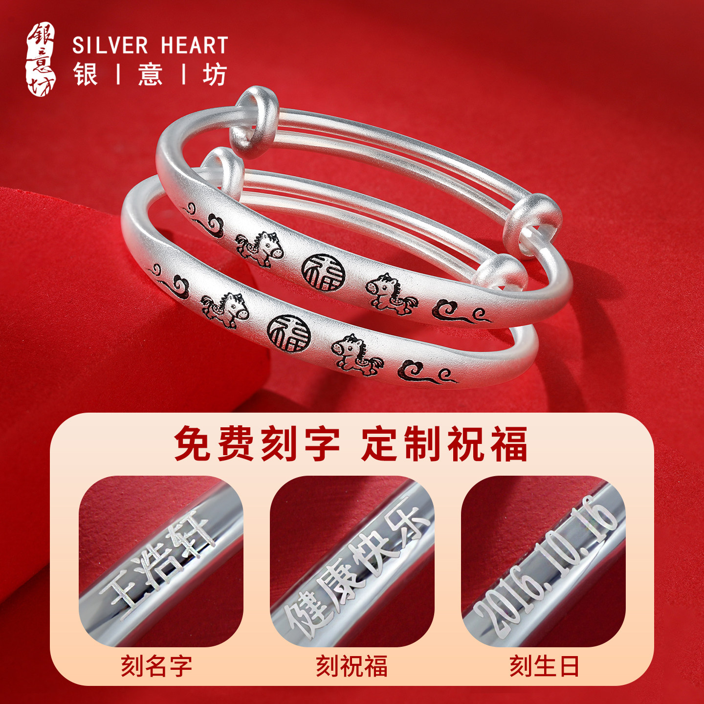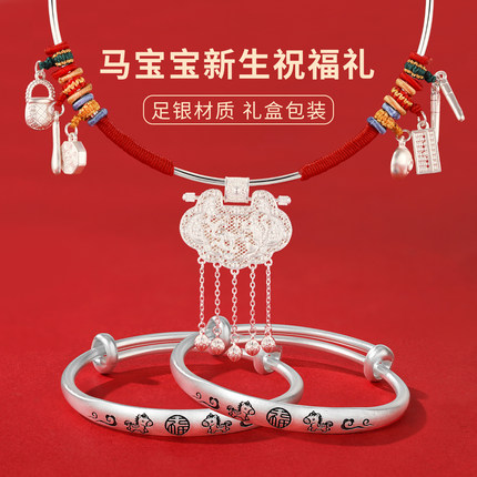 马年银手镯宝宝婴儿银饰三件套天子门生银锁长命锁纯银出生见面礼