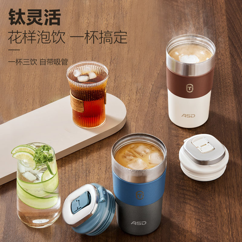 爱仕达纯钛咖啡杯保温杯2025新款女小巧便携钛杯高档商务男水杯子