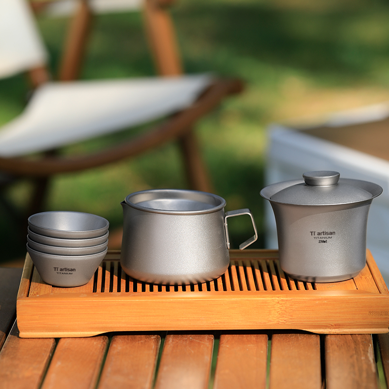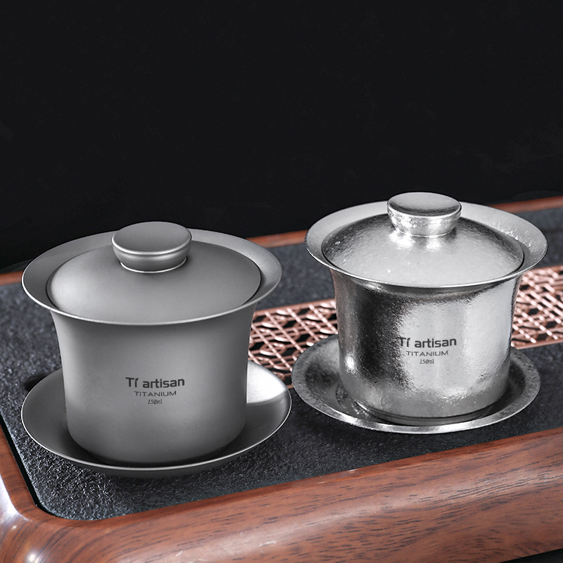 钛工匠纯钛双层盖碗功夫茶具露营二才碗茶杯家用户外带盖茶具套装