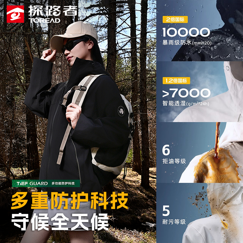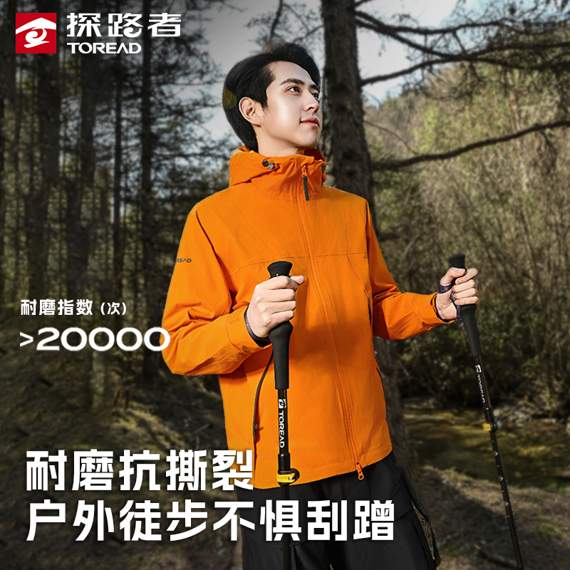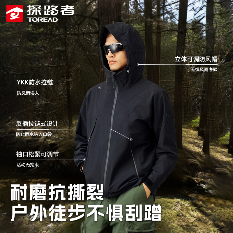 探路者单层冲锋衣男女新款户外硬壳防暴雨外套轻量徒步耐磨登山服