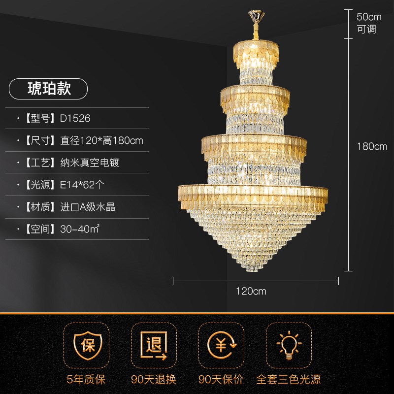 别墅复式楼水晶大吊灯楼中楼客厅大厅中空挑空欧式新款楼梯长吊灯