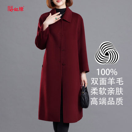 福妃缘双面羊毛大衣女中长款过膝大码双面呢新款妈妈装毛呢子外套