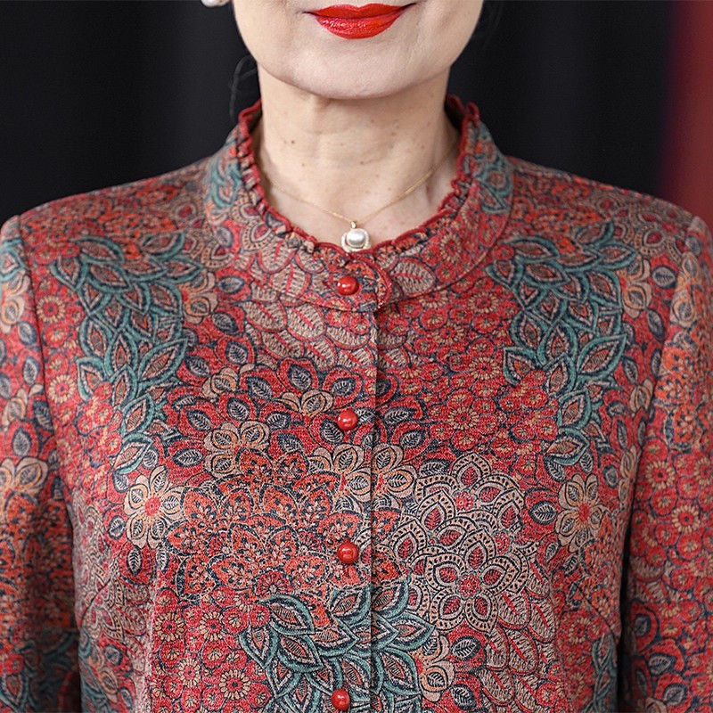 贵夫人妈妈春秋装长袖全棉衬衫中老年女春装上衣太太唐装奶奶套装