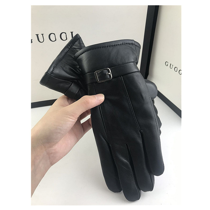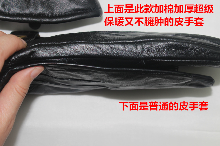 热的你出汗 保暖加绒加厚冬季骑车羊皮手套 男款开车户外真皮手套