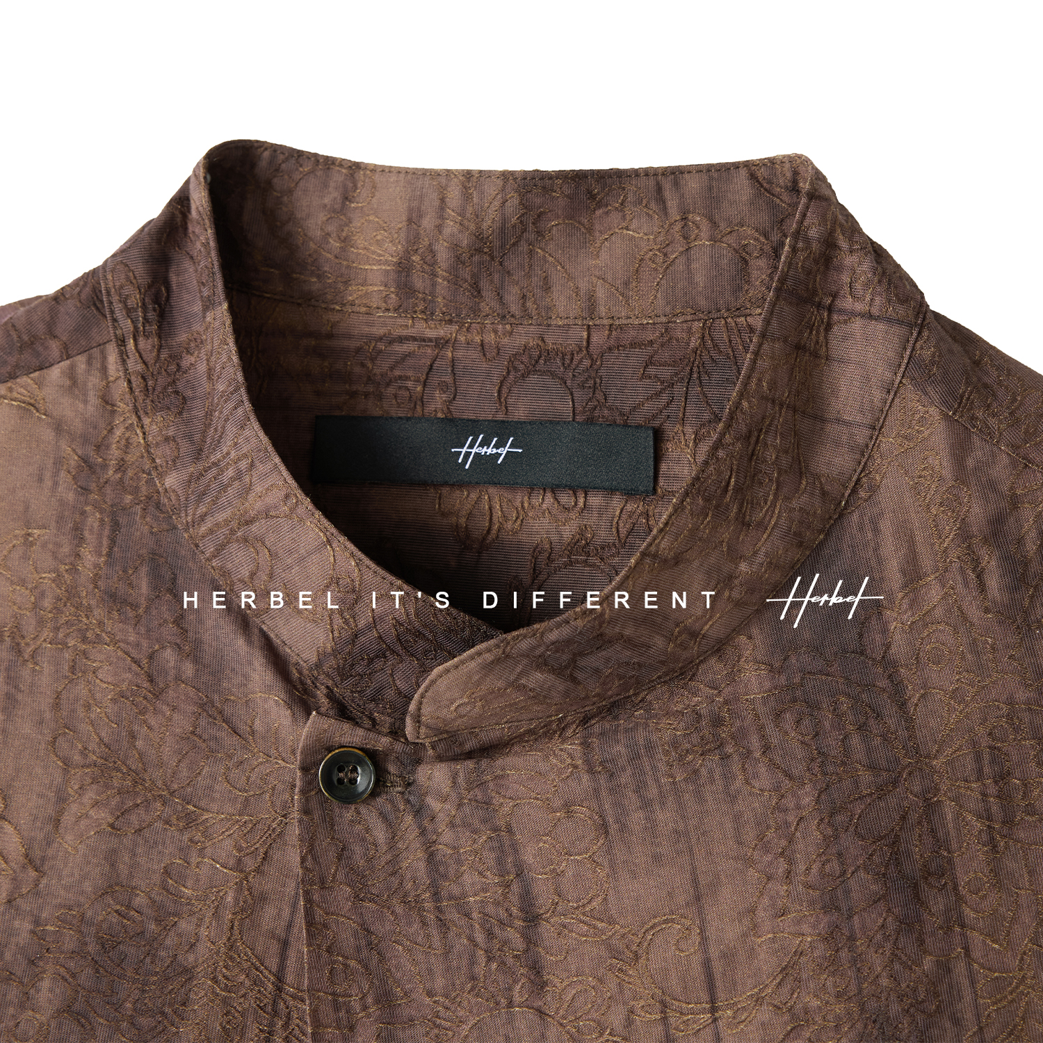 HERBEL/黑白 长袖衬衫男士25年秋季立领不对称设计感时尚休闲衬衣